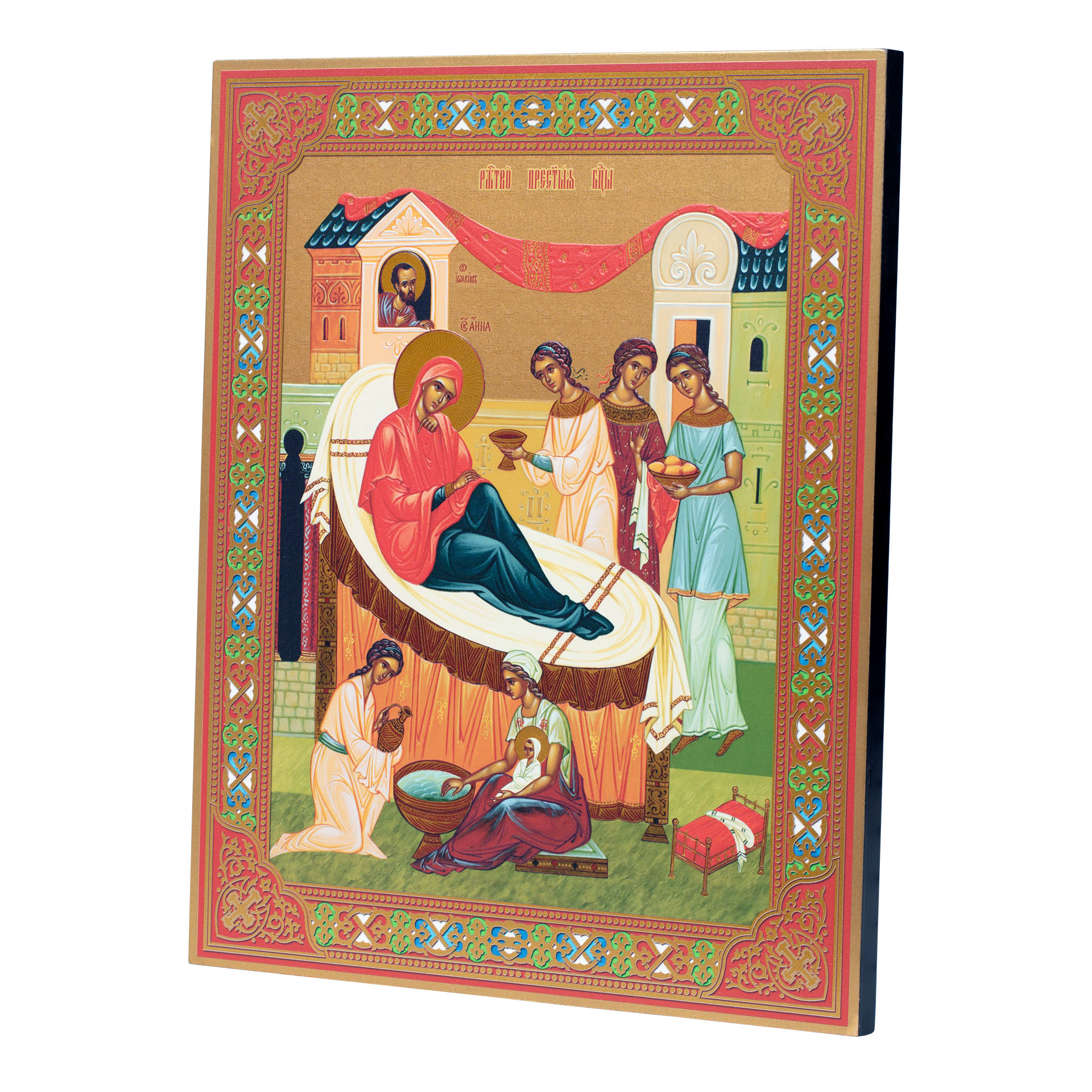 Икона на доске 33х40 золоченое покрытие, объёмная печать, лак Рождество Богородицы