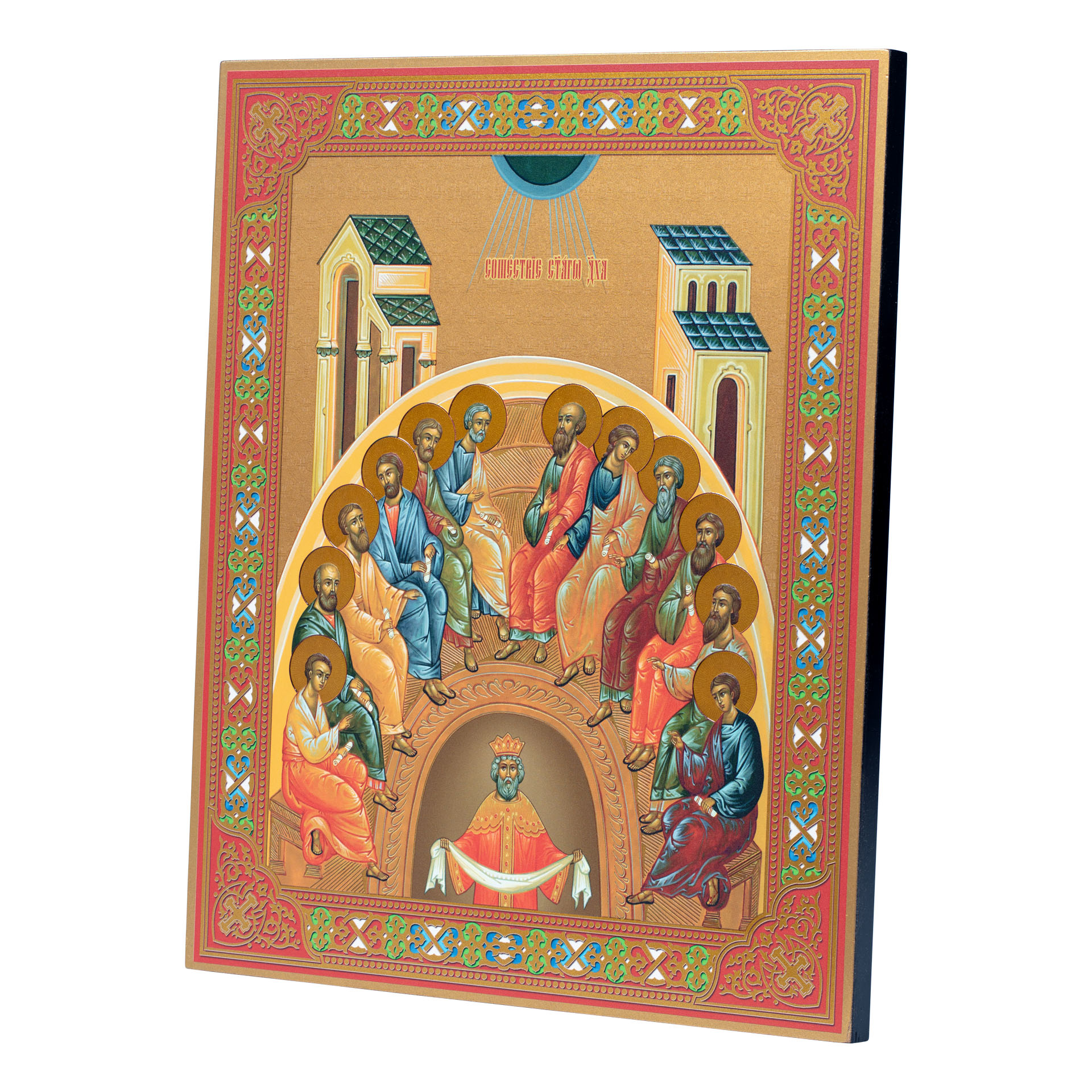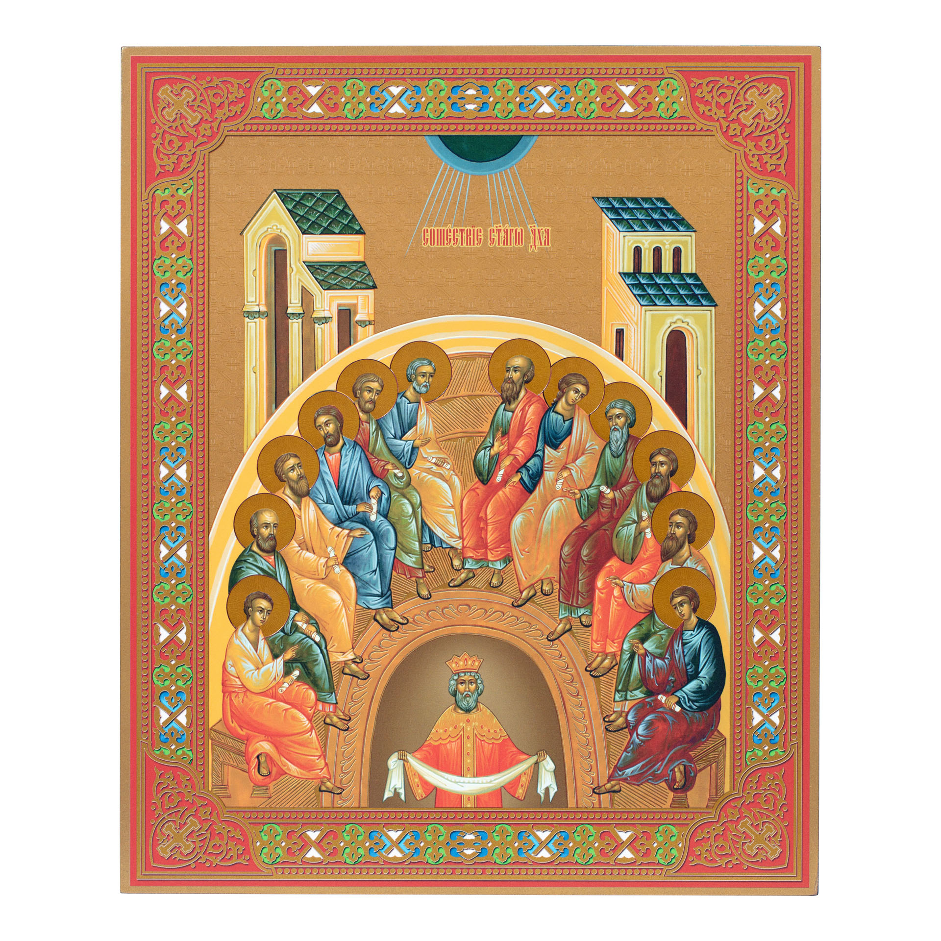 Икона на доске 33х40 золоченое покрытие, объёмная печать, лак Сошествие Святого Духа