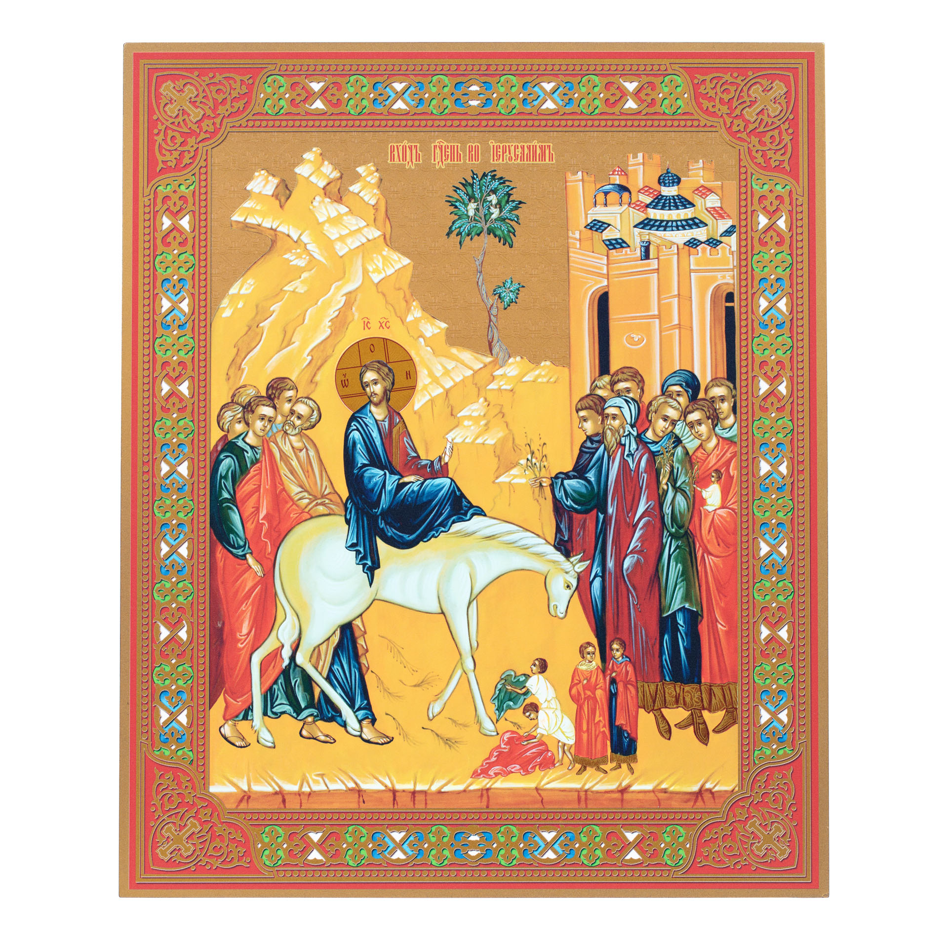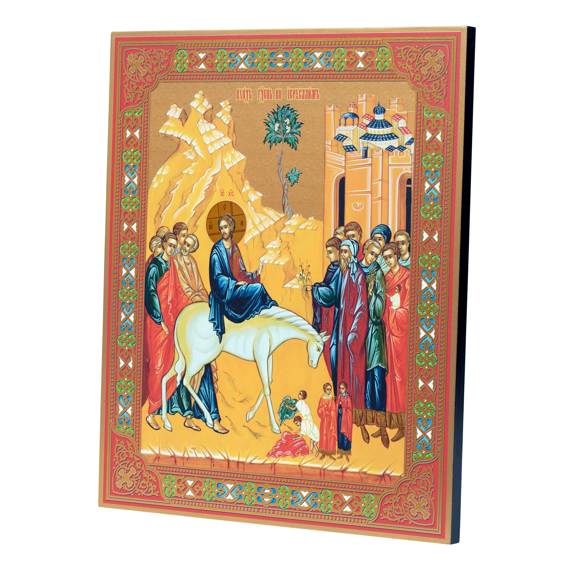 Икона на доске 33х40 золоченое покрытие, объёмная печать, лак Вход в Иерусалим