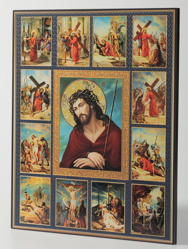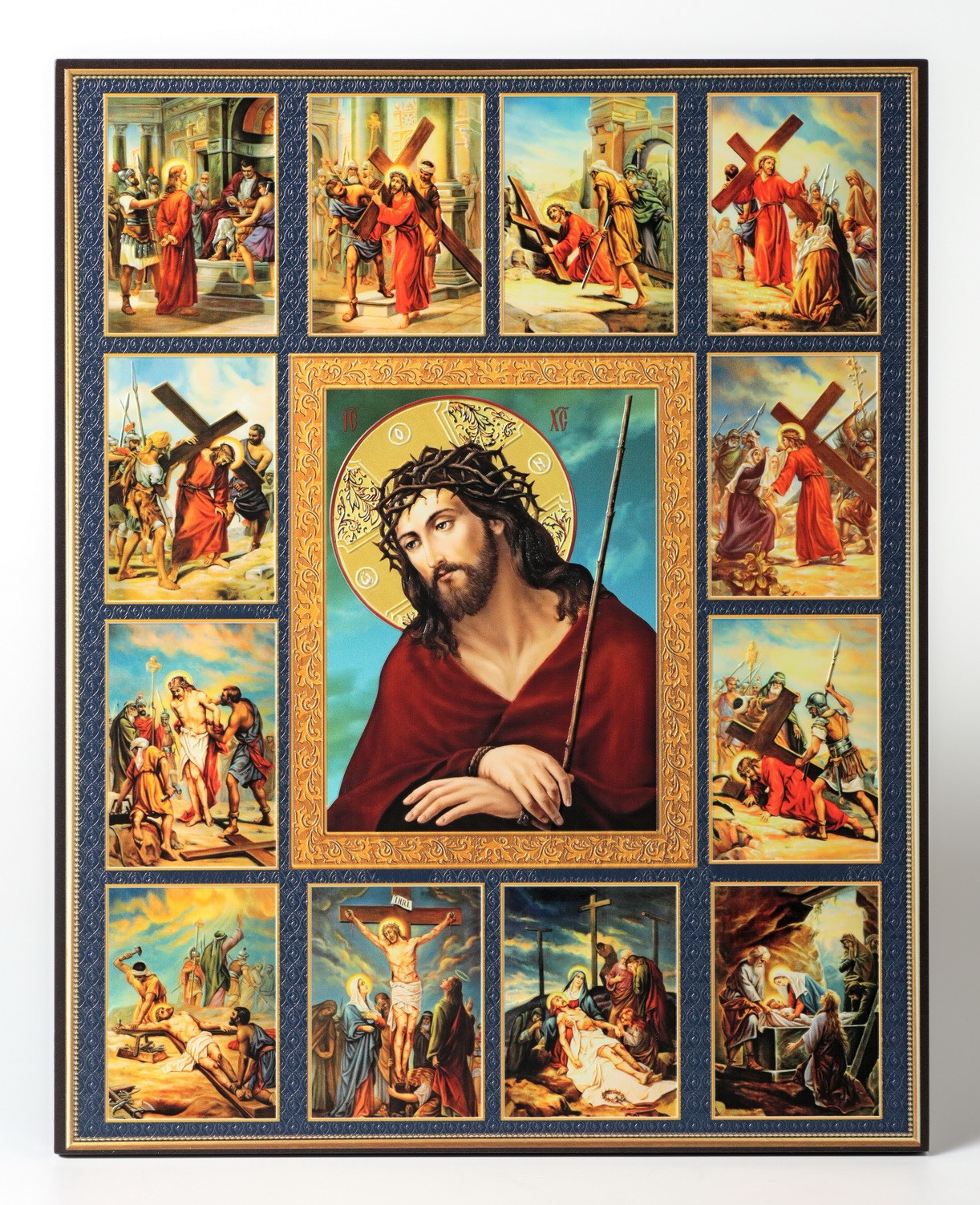 Икона на доске 40х50 объемная печать, лак Спас в терновом венце