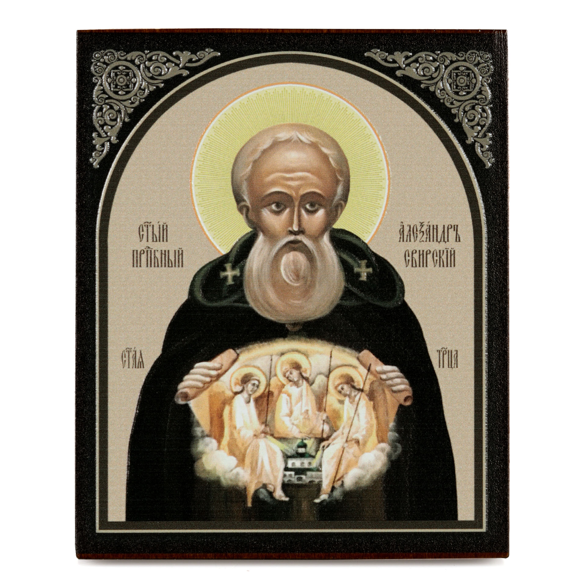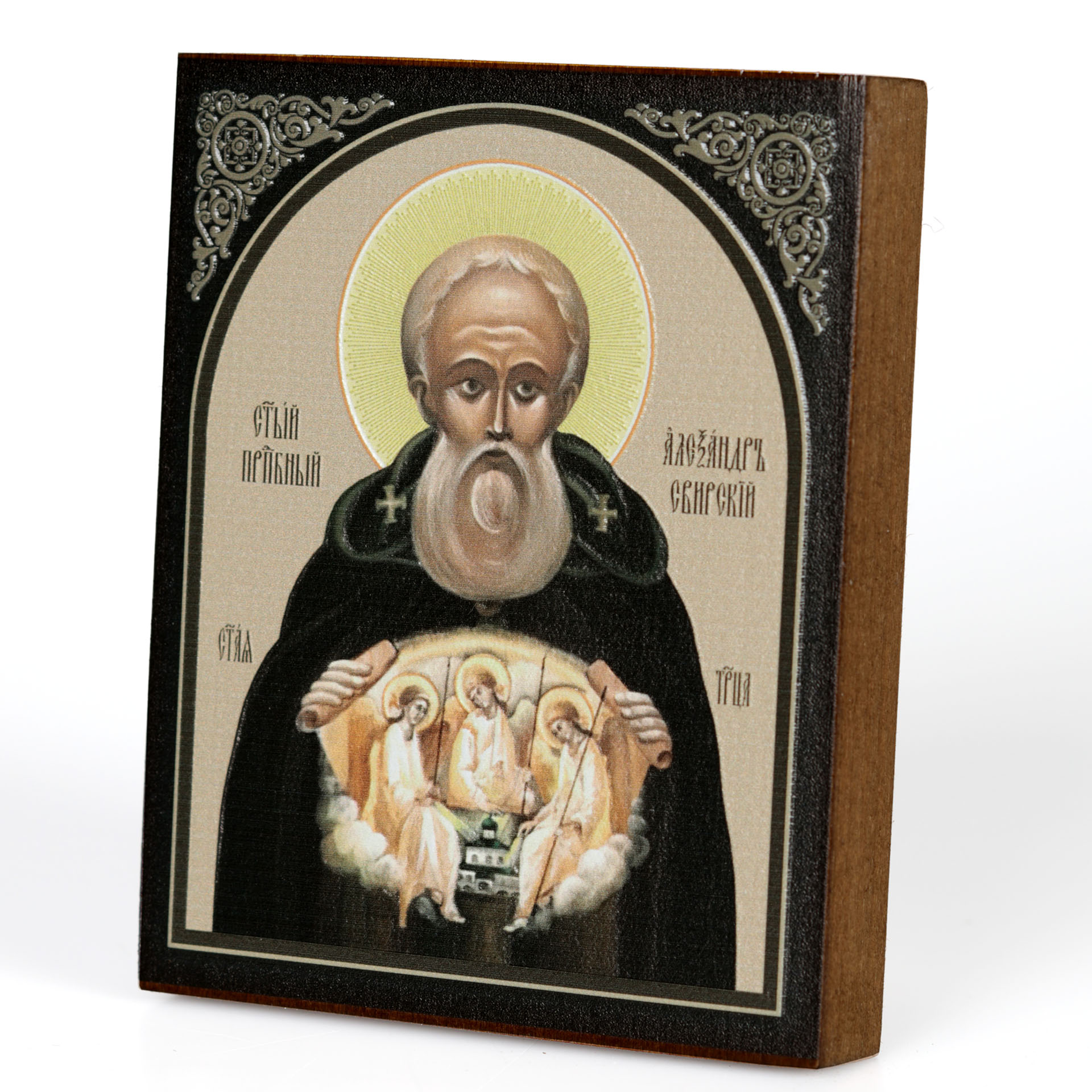 Икона на доске 9х11 объемная печать, лак Александр Свирский 2,