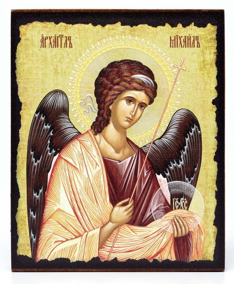 Икона на доске 9х11 объемная печать, лак Архангел Михаил 2