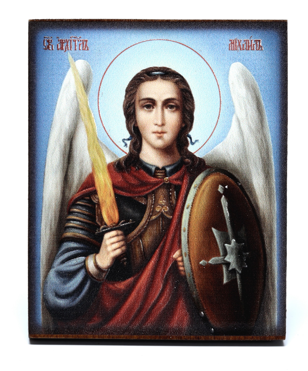 Икона на доске 9х11 объемная печать, лак Архангел Михаил