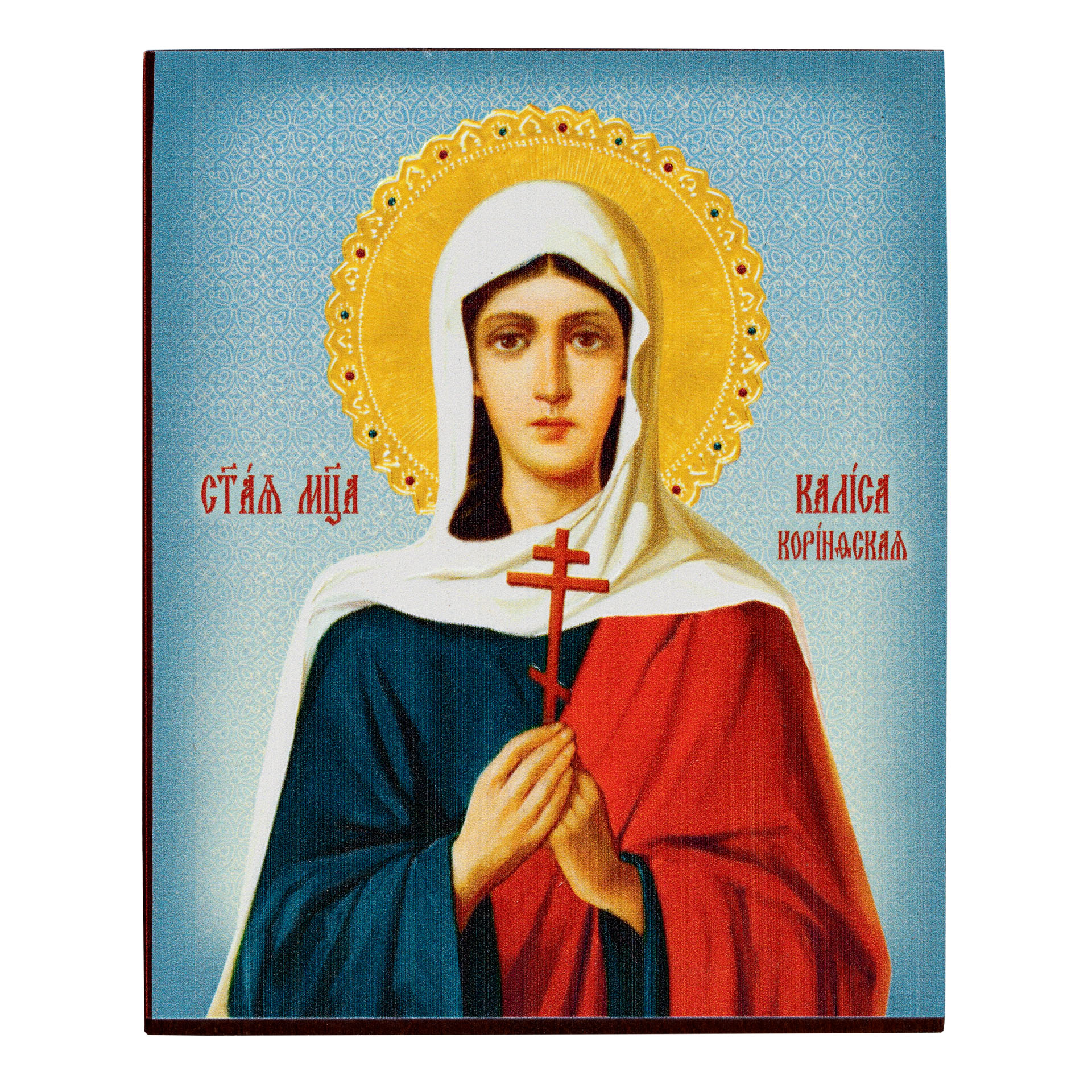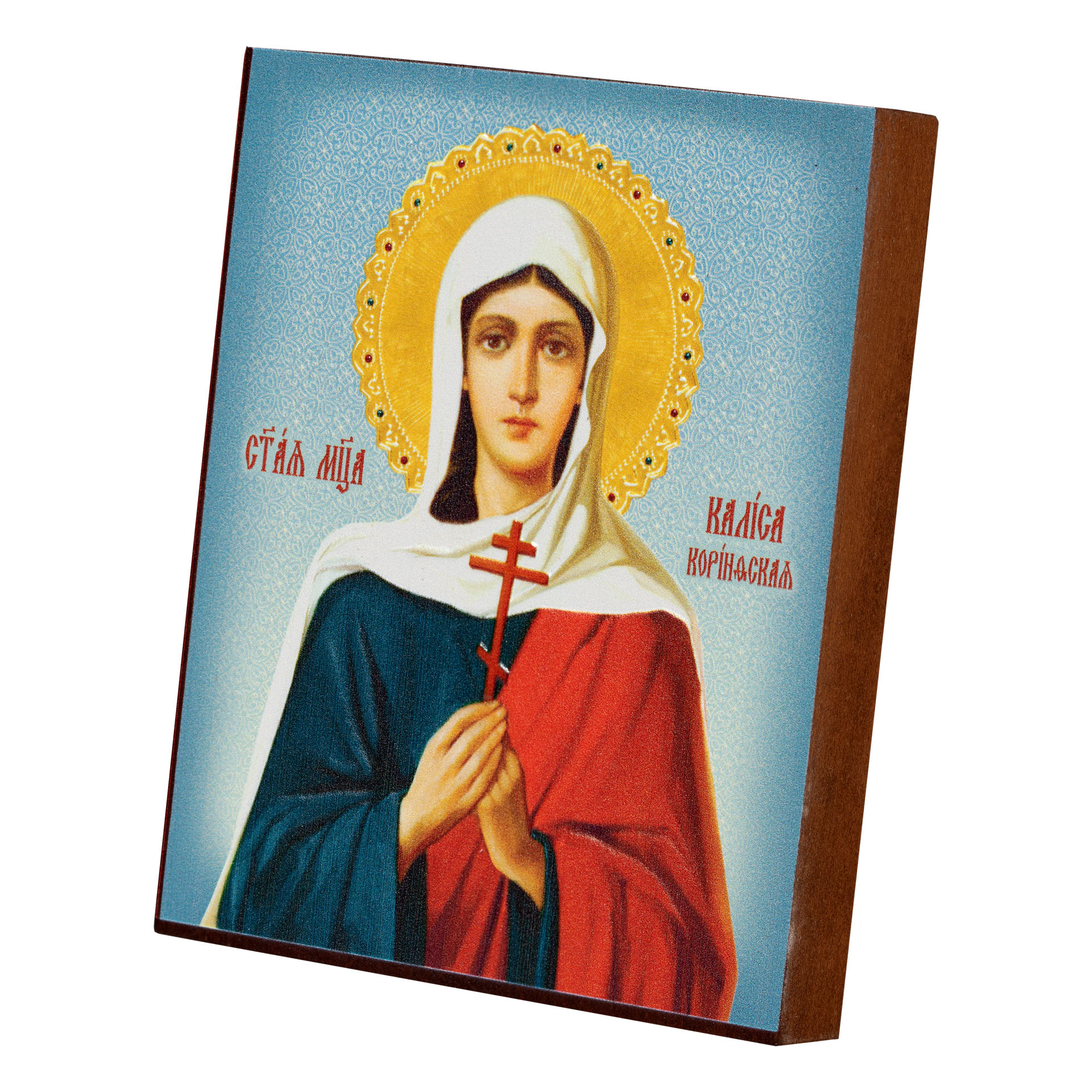Икона на доске 9х11 объемная печать, лак Калиса Коринфская