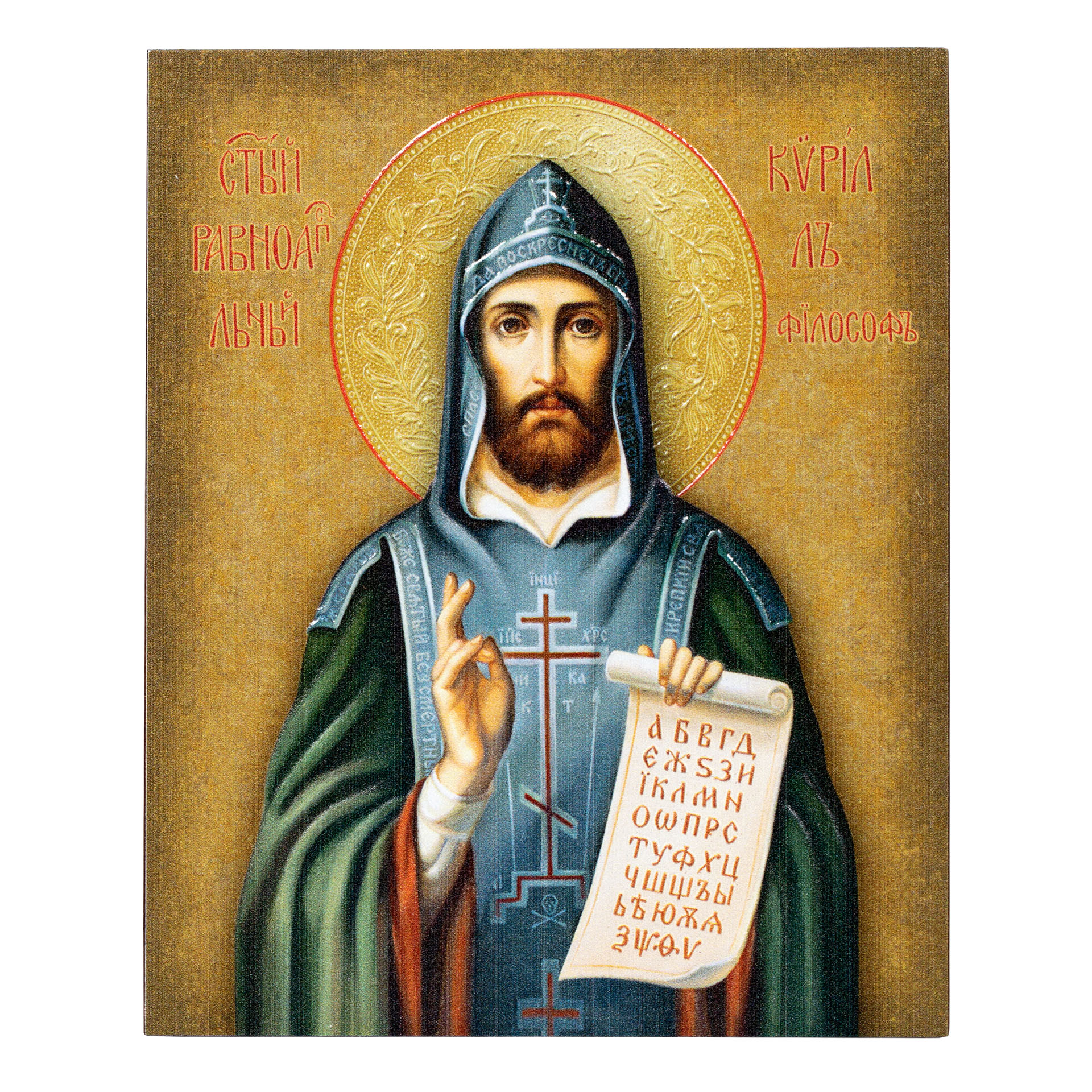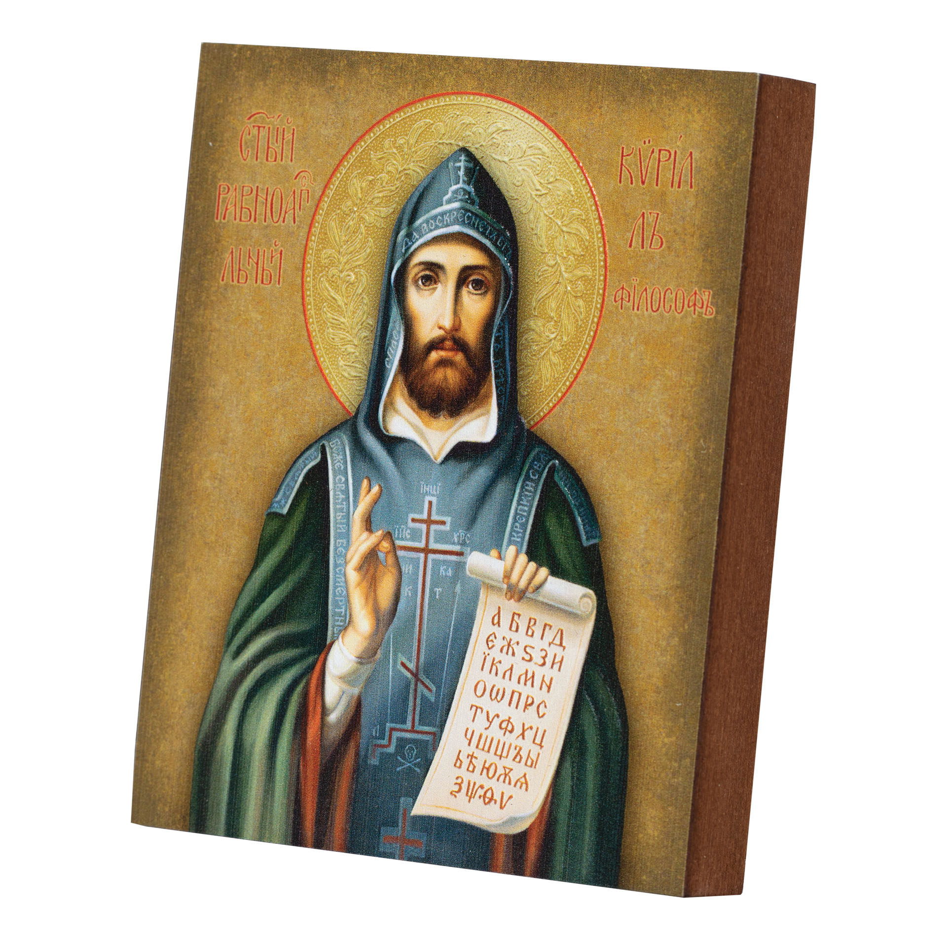 Икона на доске 9х11 объемная печать, лак Кирилл