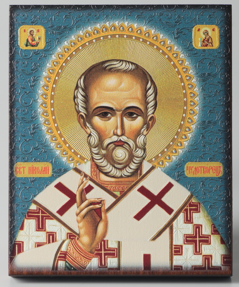 Икона на доске 9х11 объемная печать, лак Николай Чудотворец 1