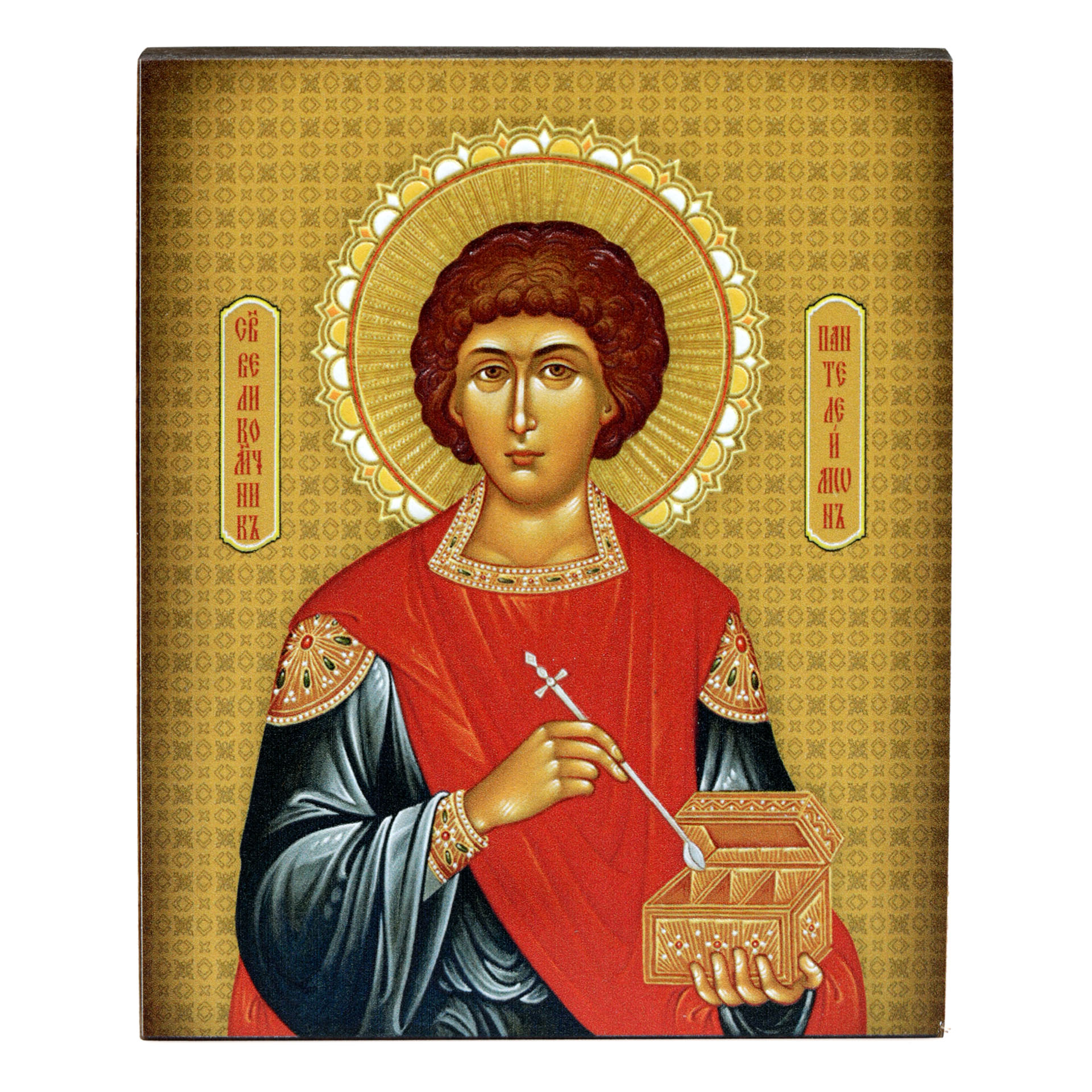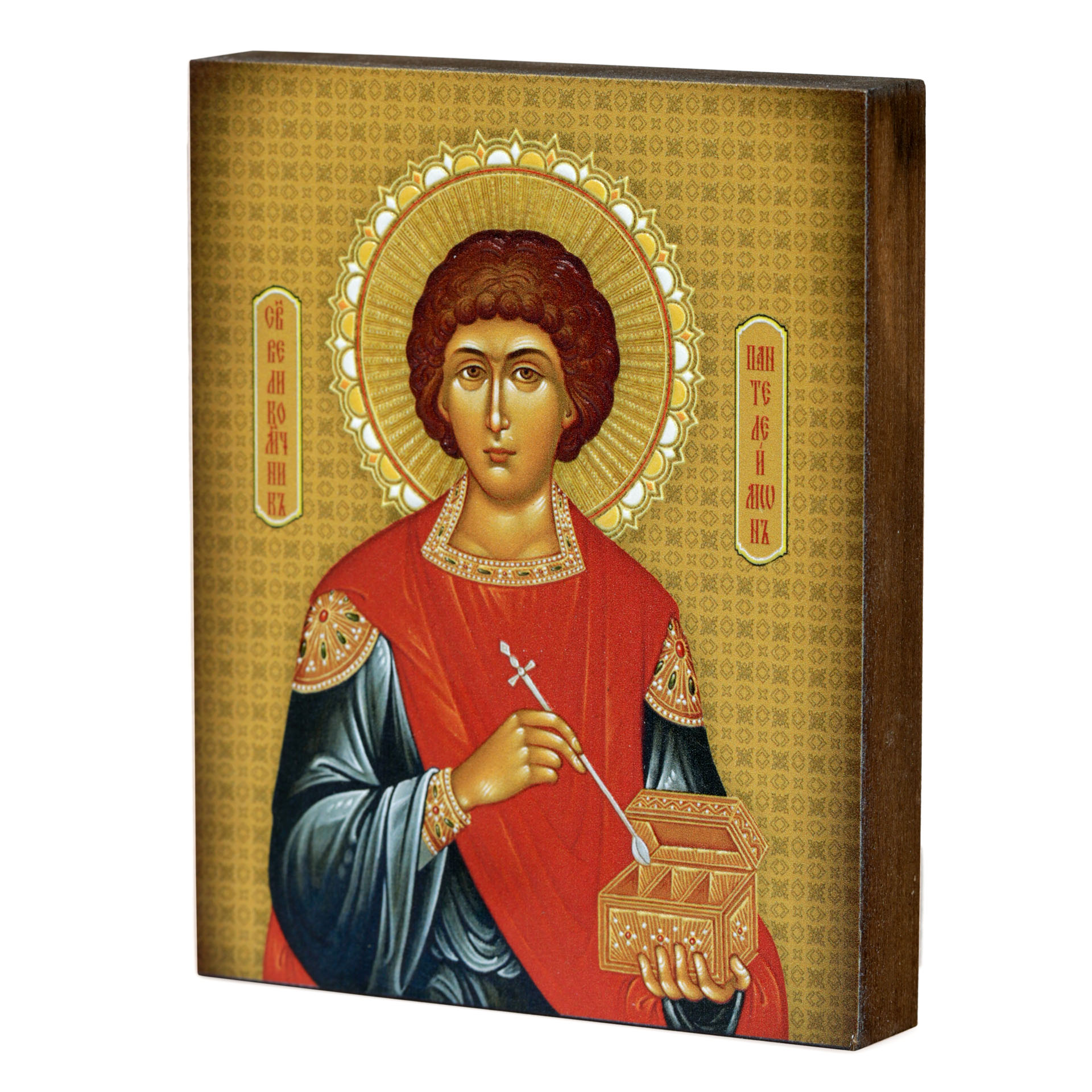Икона на доске 9х11 объемная печать, лак Пантелеимон 2