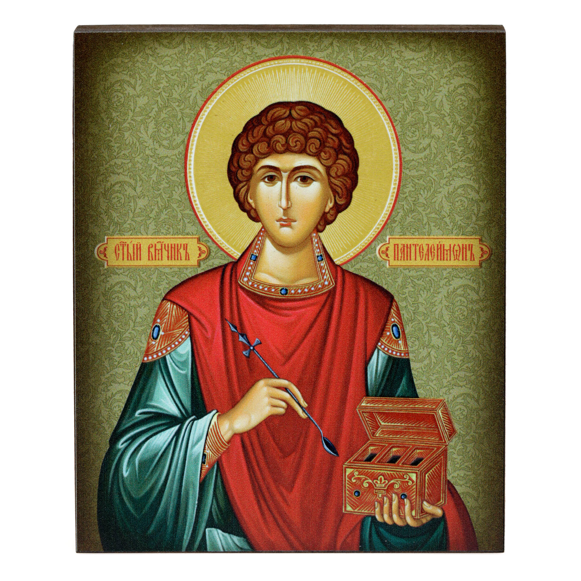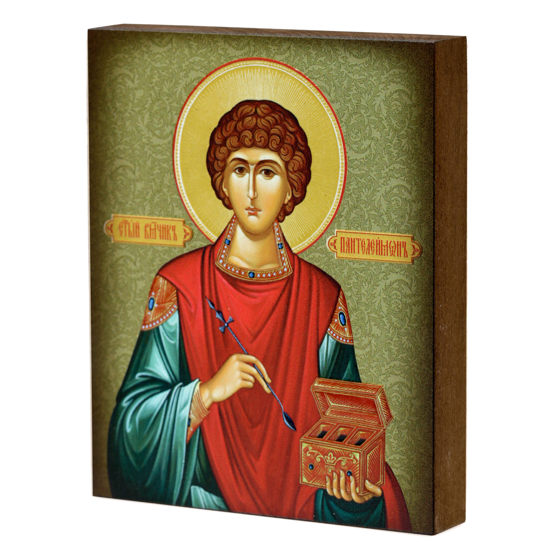 Икона на доске 9х11 объемная печать, лак Пантелеимон 3