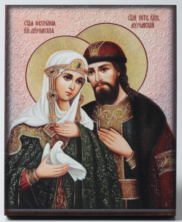 Икона на доске 9х11 объемная печать, лак Петр и Феврония 1