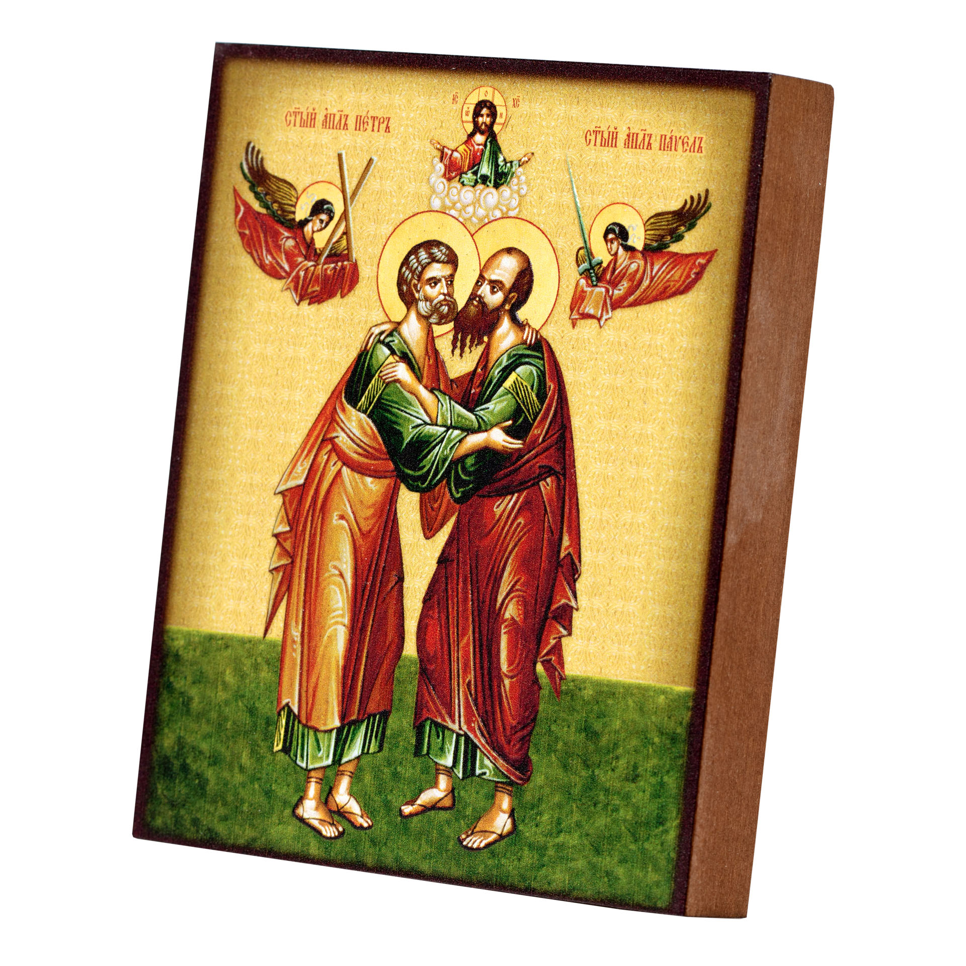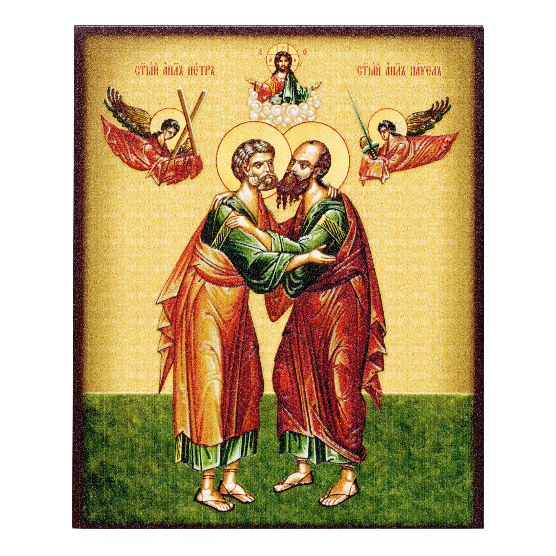 Икона на доске 9х11 объемная печать, лак Петр Павел