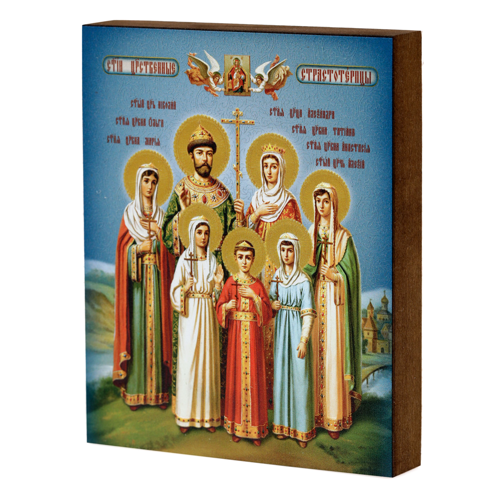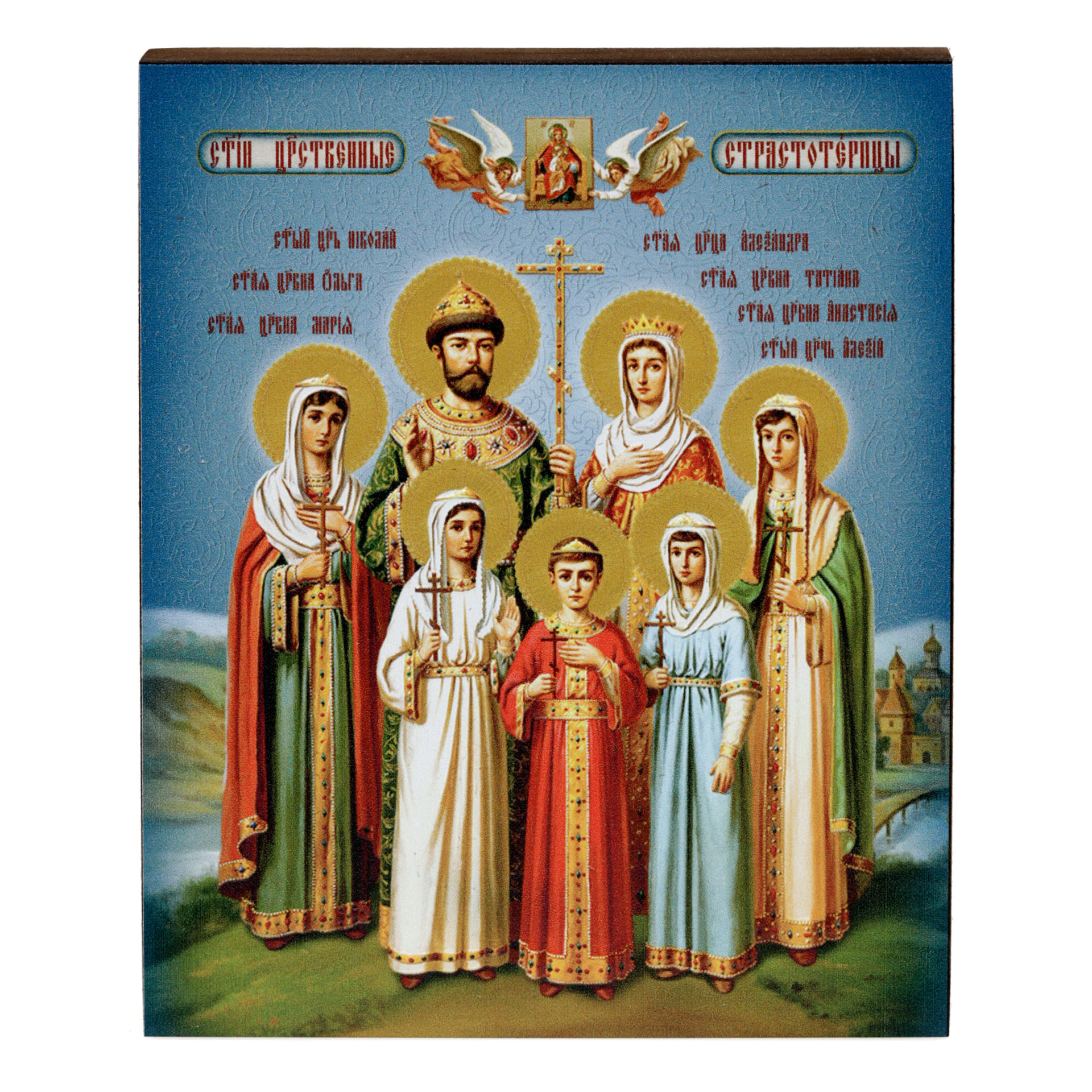 Икона на доске 9х11 объемная печать, лак Царская семья 5