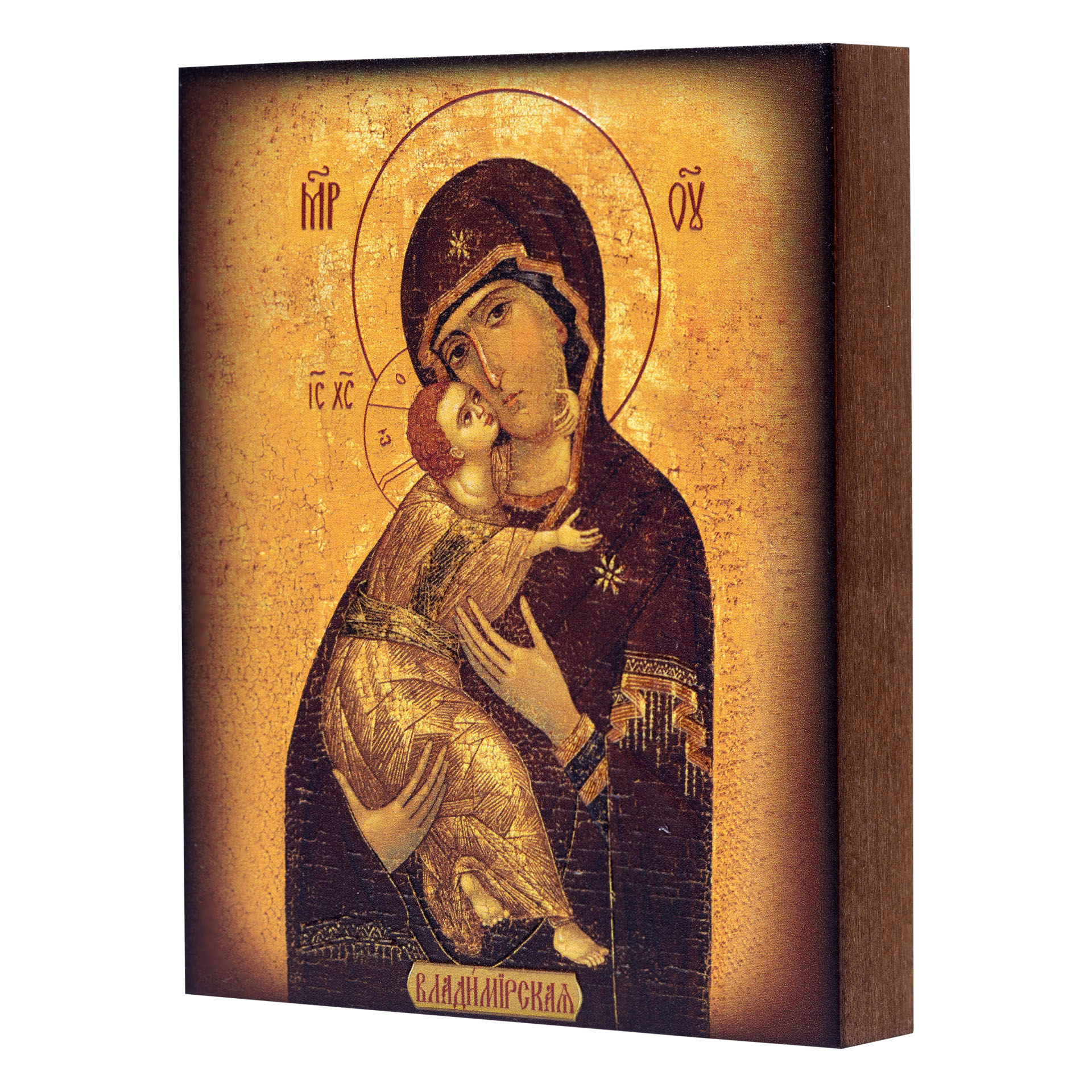 Икона на доске 9х11 объемная печать, лак Владимирская БМ