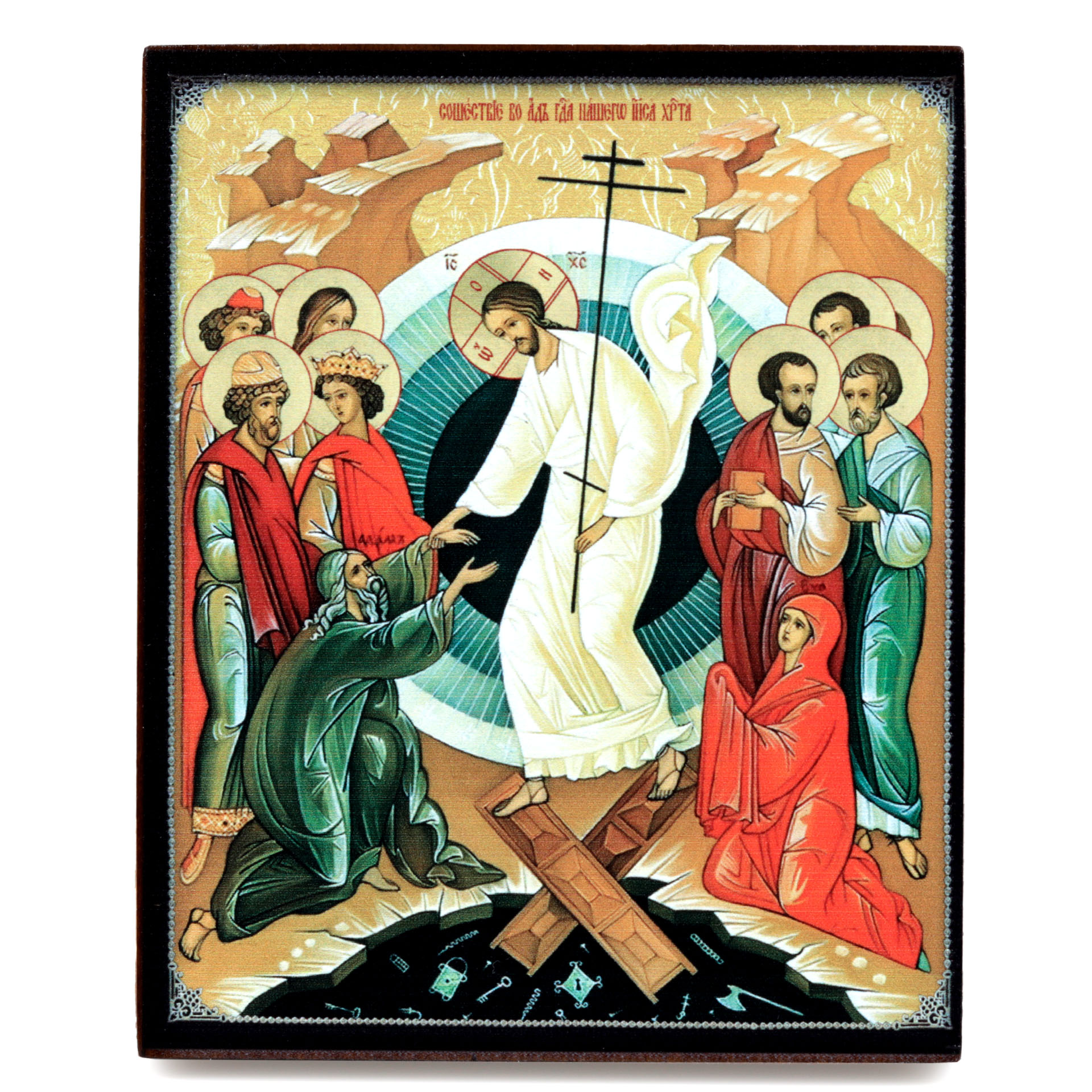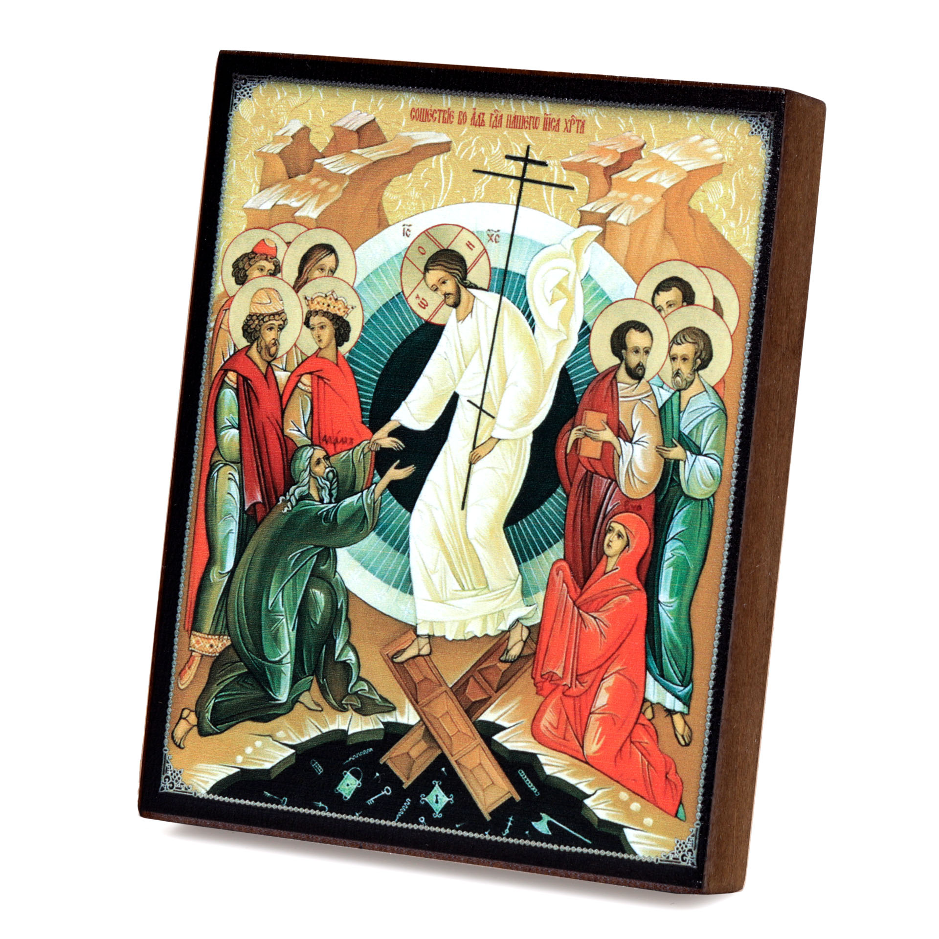 Икона на доске 9х11 объемная печать, лак Воскресение Христово 1,