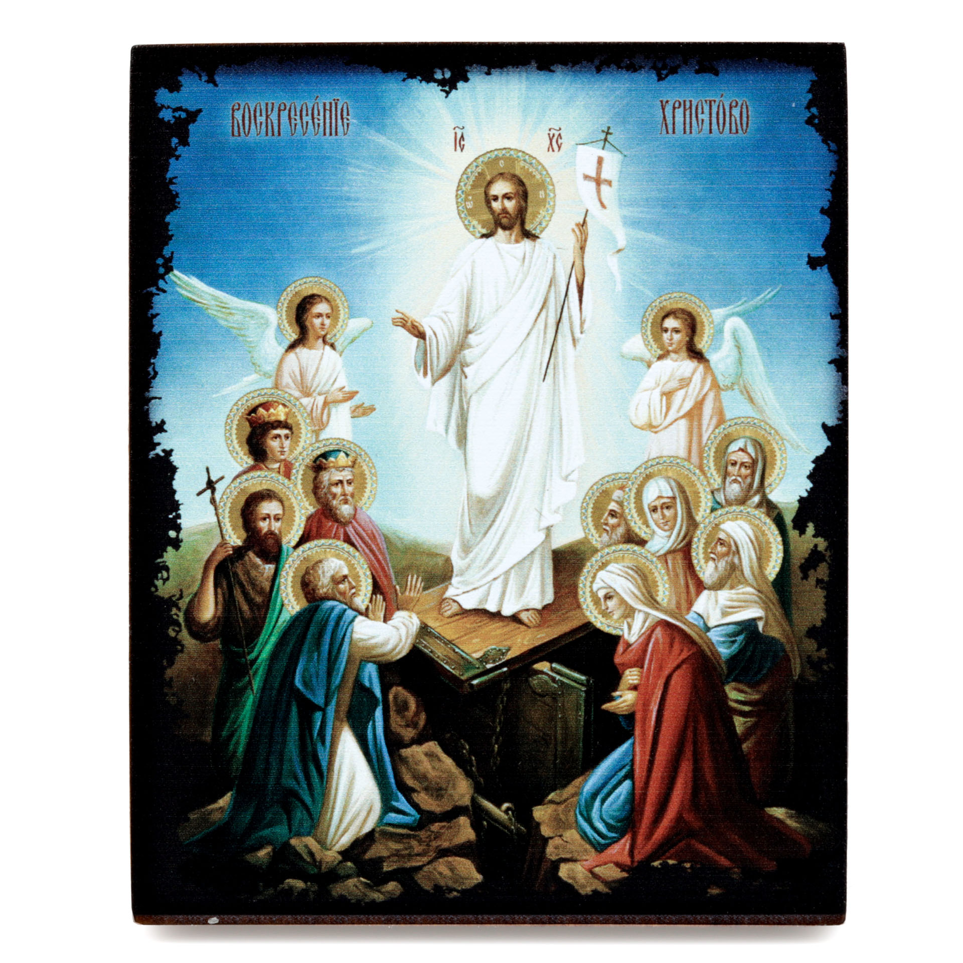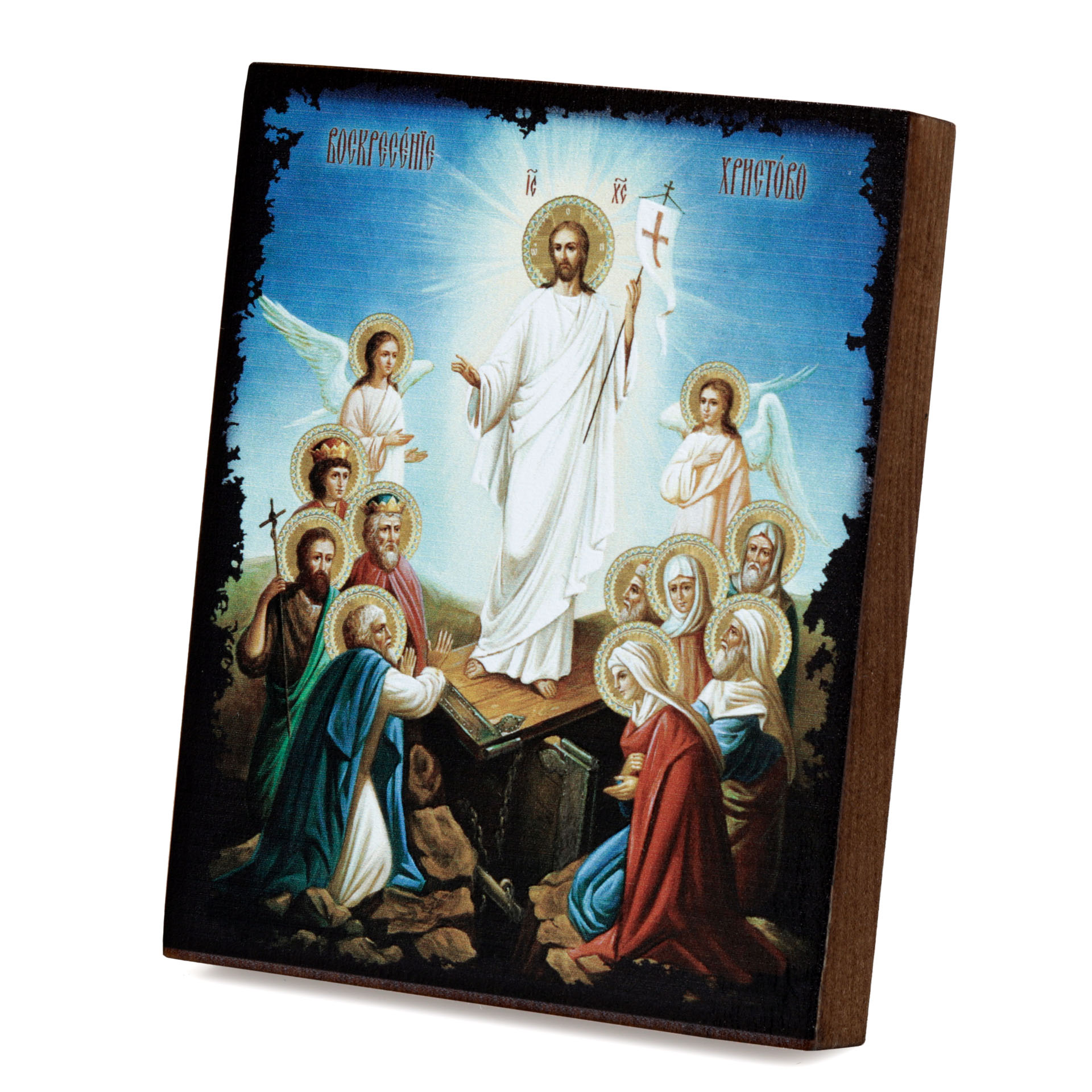 Икона на доске 9х11 объемная печать, лак Воскресение Христово 2,