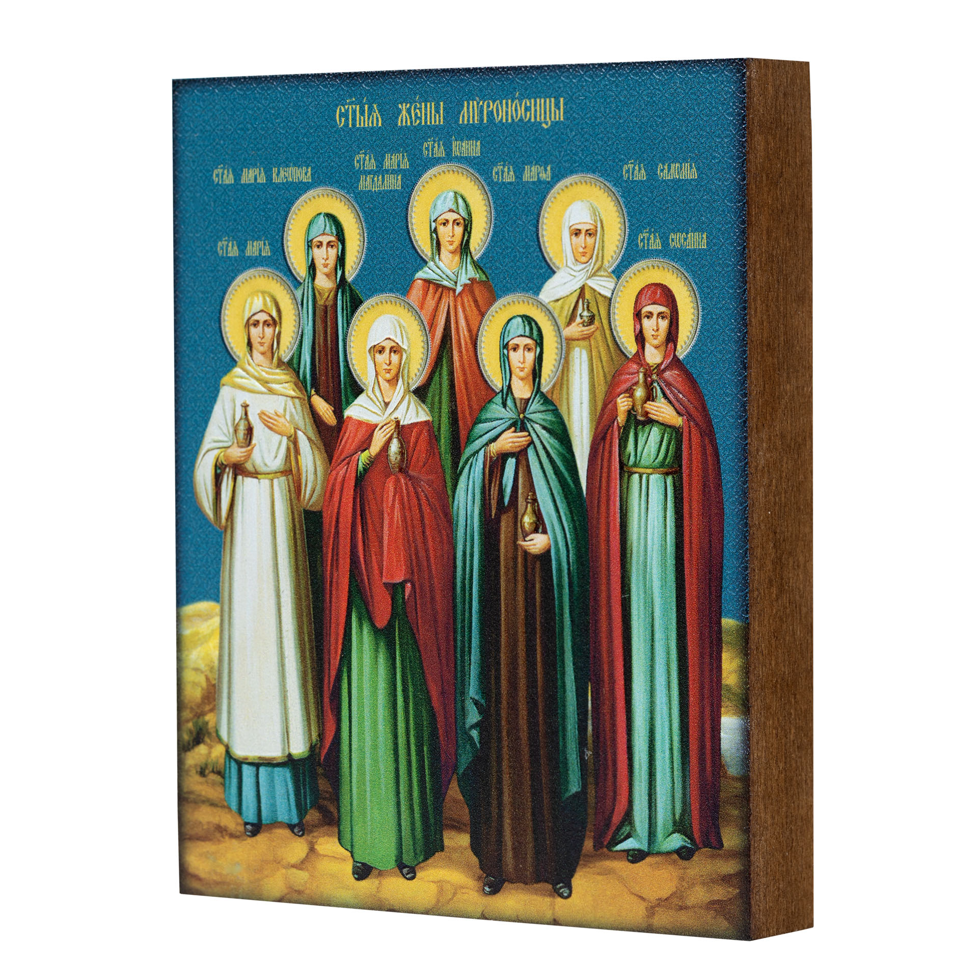 Икона на доске 9х11 объемная печать, лак Жены Мироносицы