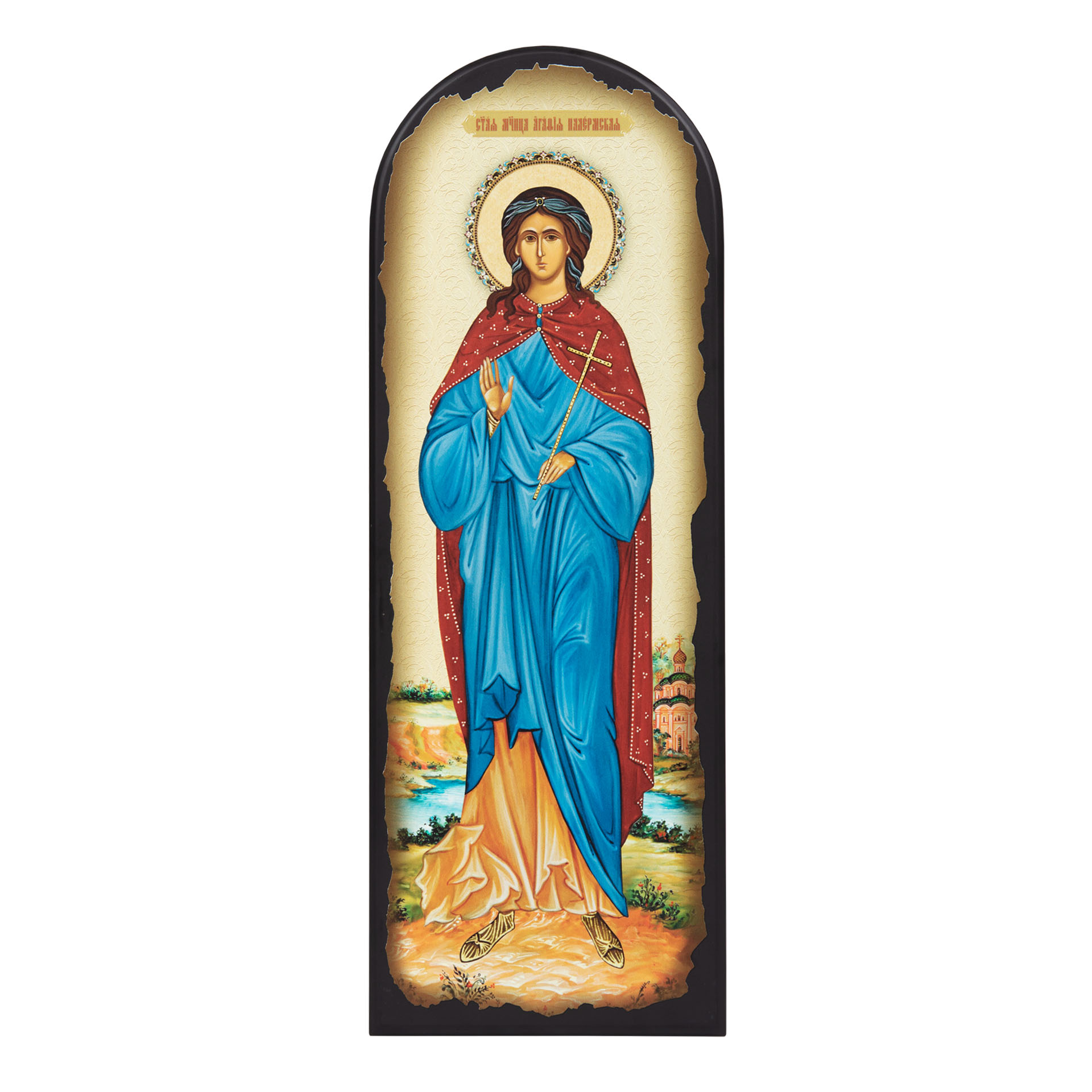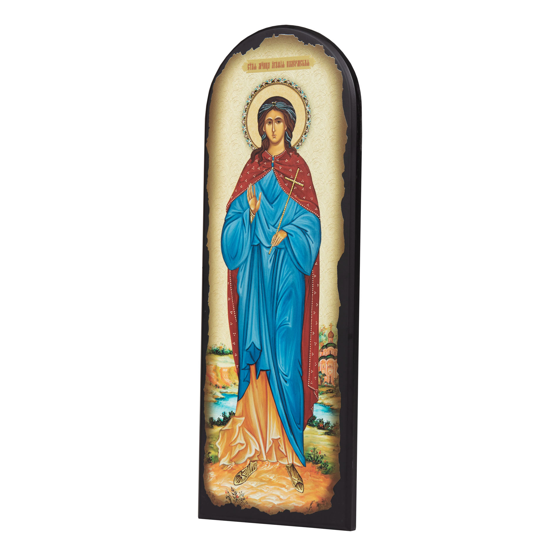 Икона на МДФ 18х50 арочная, объёмная печать, лак Агафия Палермская