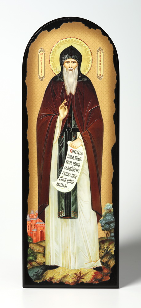 Икона на МДФ 18х50 арочная, объёмная печать, лак Амвросий Оптинский