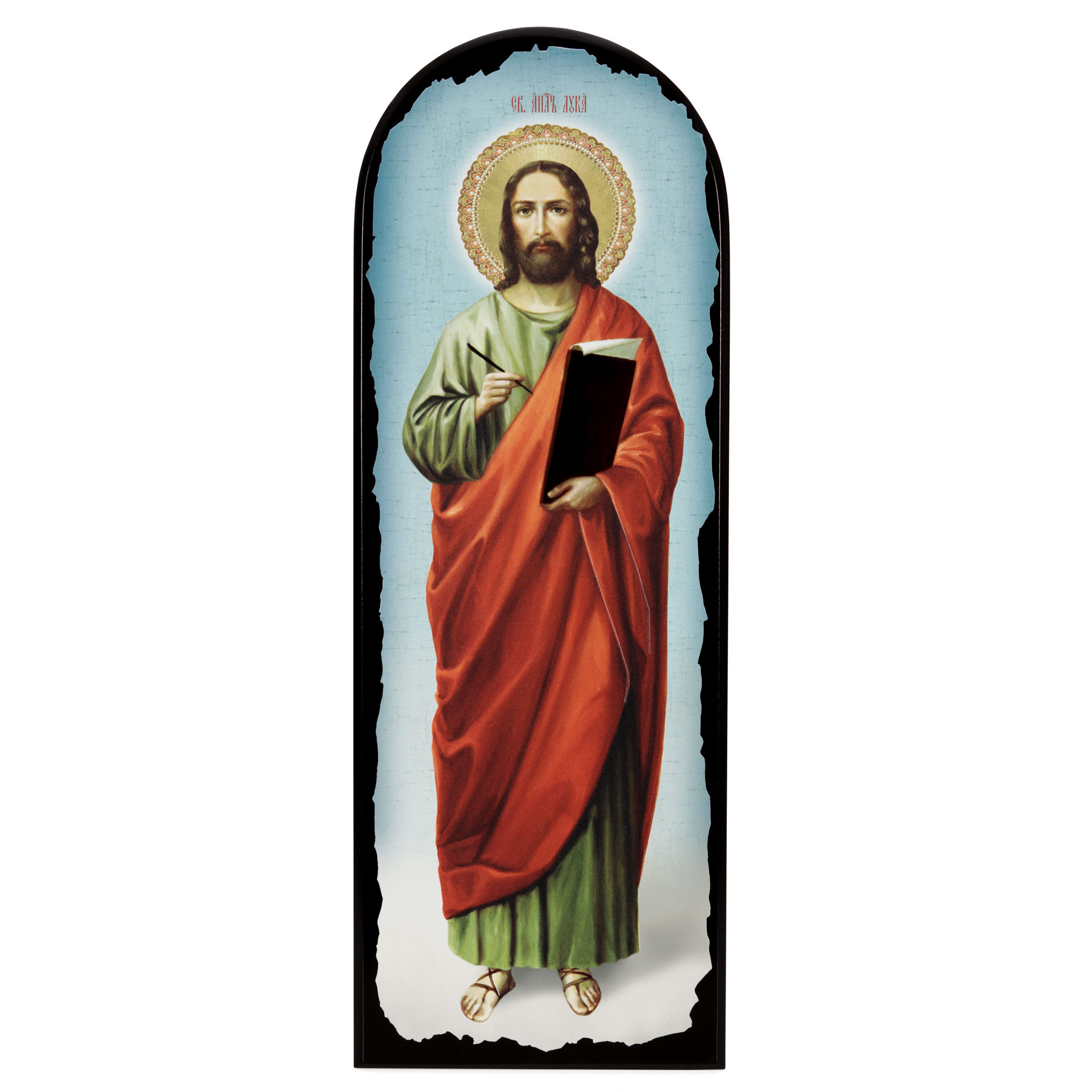 Икона на МДФ 18х50 арочная, объёмная печать, лак Апостол Лука
