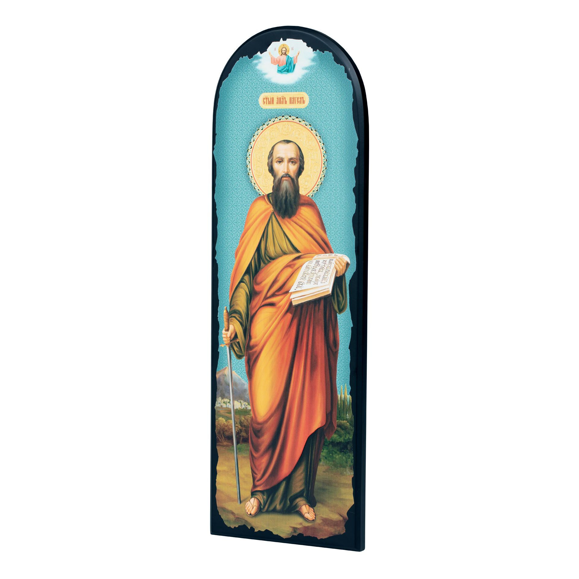 Икона на МДФ 18х50 арочная, объёмная печать, лак Апостол Павел 3