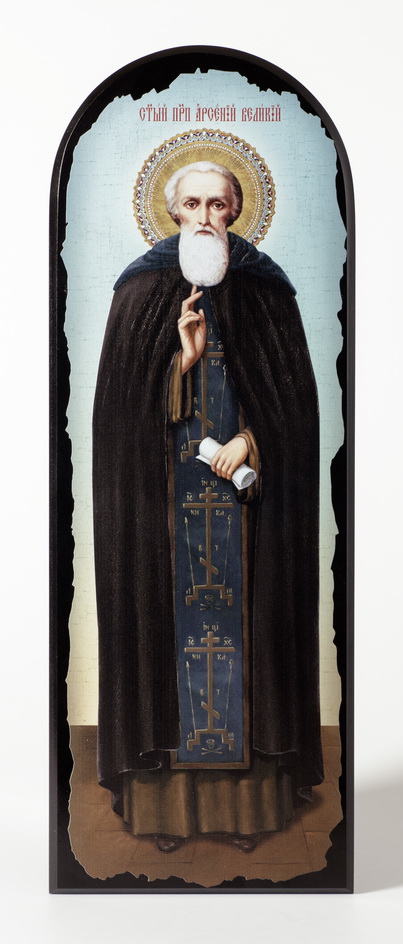 Икона на МДФ 18х50 арочная, объёмная печать, лак Арсений Великий