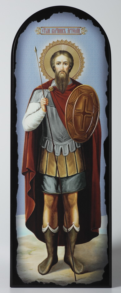 Икона на МДФ 18х50 арочная, объёмная печать, лак Артемий Антиохийский 2