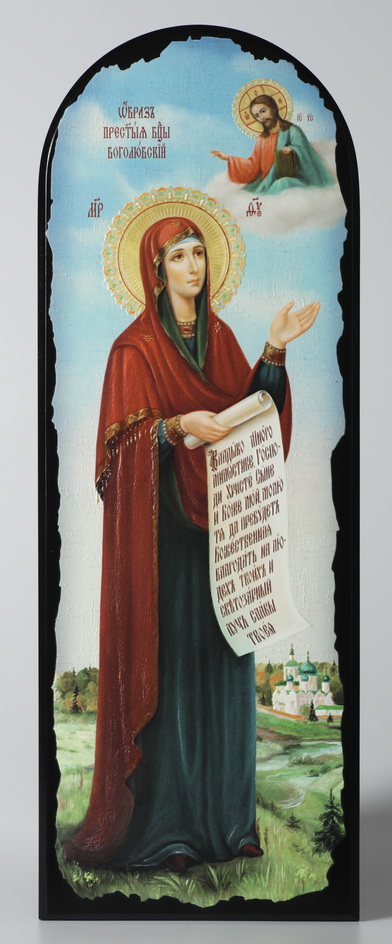 Икона на МДФ 18х50 арочная, объёмная печать, лак Боголюбская БМ