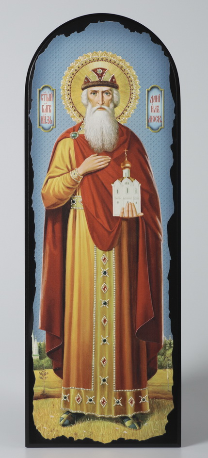 Икона на МДФ 18х50 арочная, объёмная печать, лак Даниил Московский