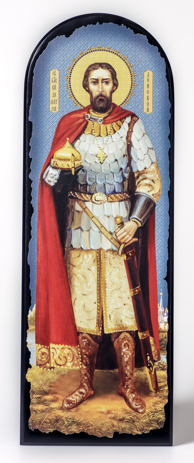 Икона на МДФ 18х50 арочная, объёмная печать, лак Димитрий Донской 2