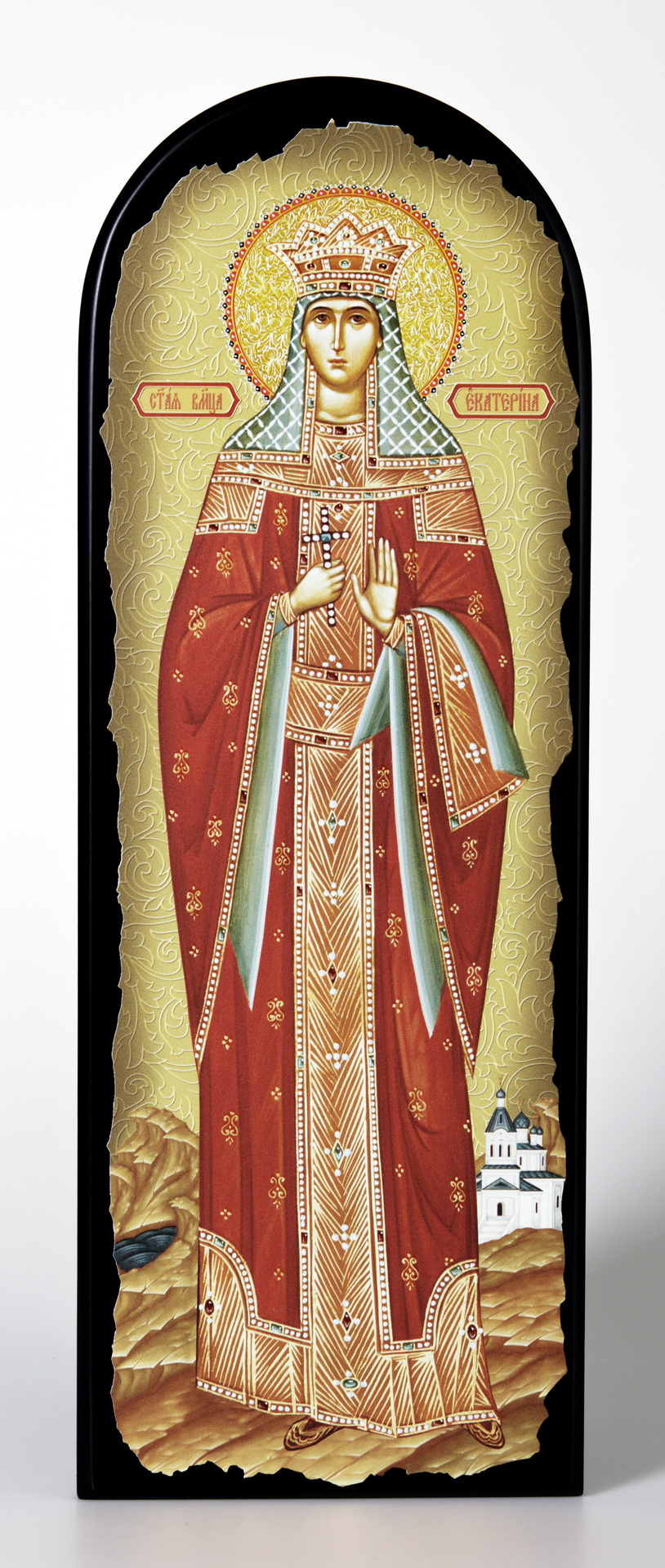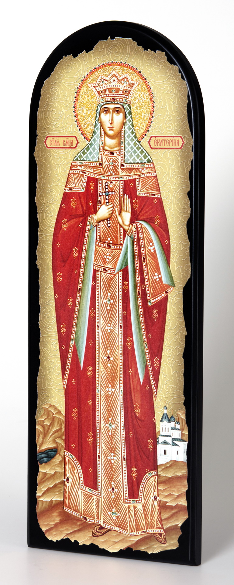 Икона на МДФ 18х50 арочная, объёмная печать, лак Екатерина 4