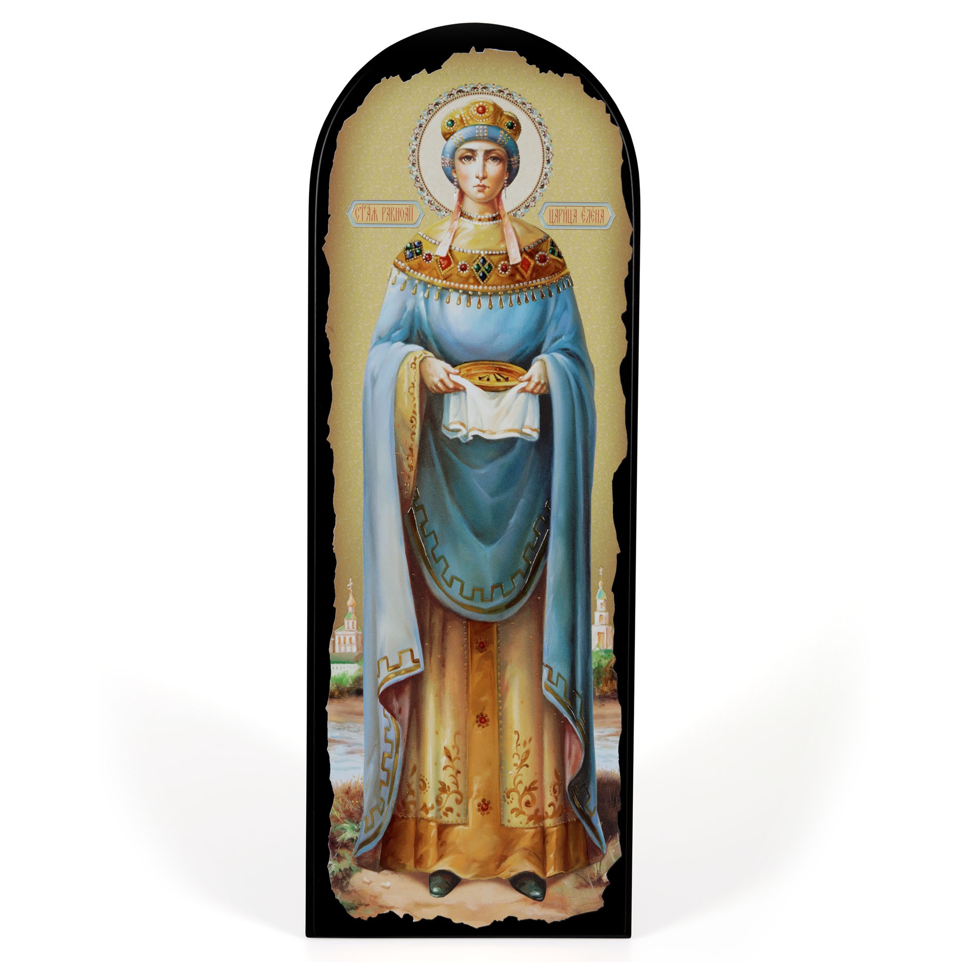 Икона на МДФ 18х50 арочная, объёмная печать, лак Елена 2