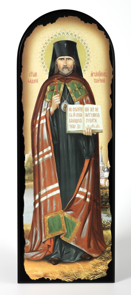 Икона на МДФ 18х50 арочная, объёмная печать, лак Фаддей Архиепископ Тверской