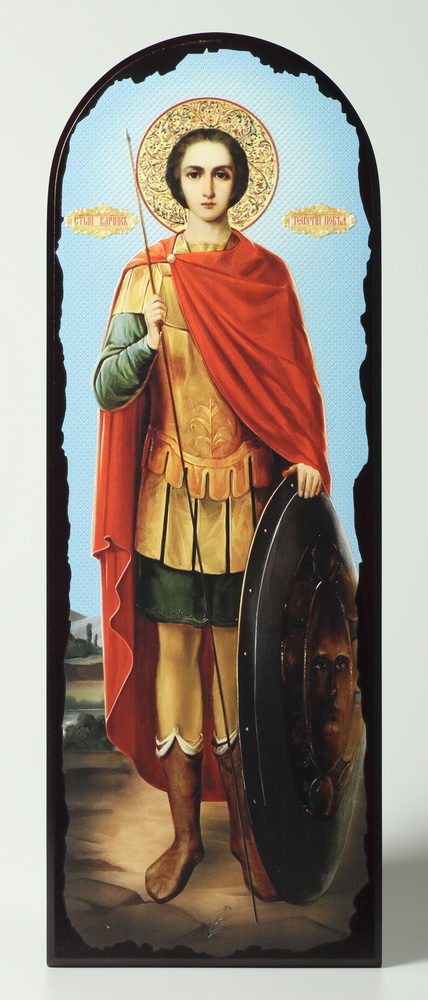 Икона на МДФ 18х50 арочная, объёмная печать, лак Георгий Победоносец 1