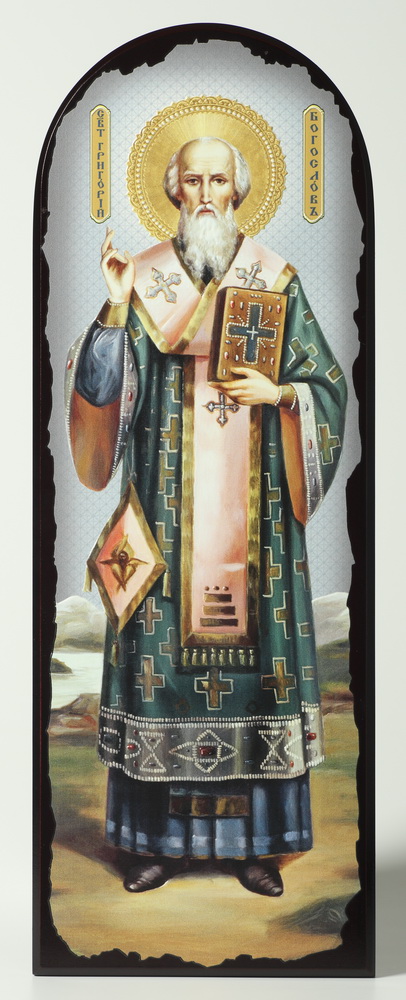 Икона на МДФ 18х50 арочная, объёмная печать, лак Григорий Богослов