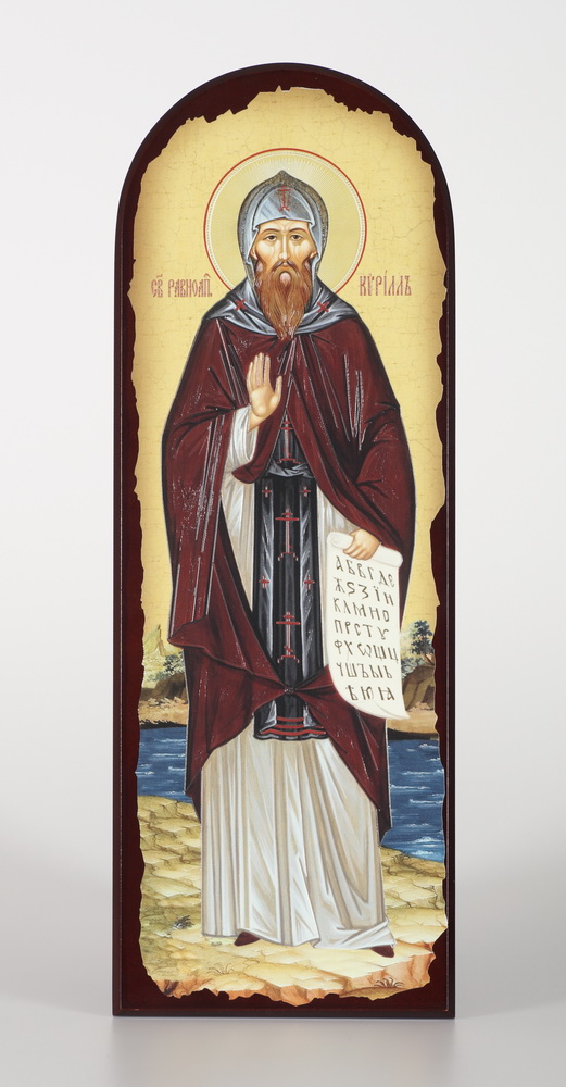 Икона на МДФ 18х50 арочная, объёмная печать, лак Кирилл