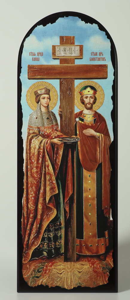 Икона на МДФ 18х50 арочная, объёмная печать, лак Константин и Елена