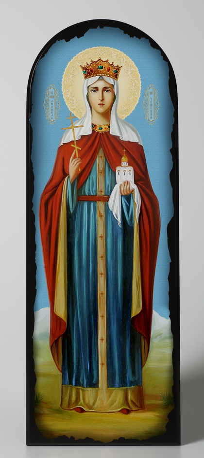 Икона на МДФ 18х50 арочная, объёмная печать, лак Людмила