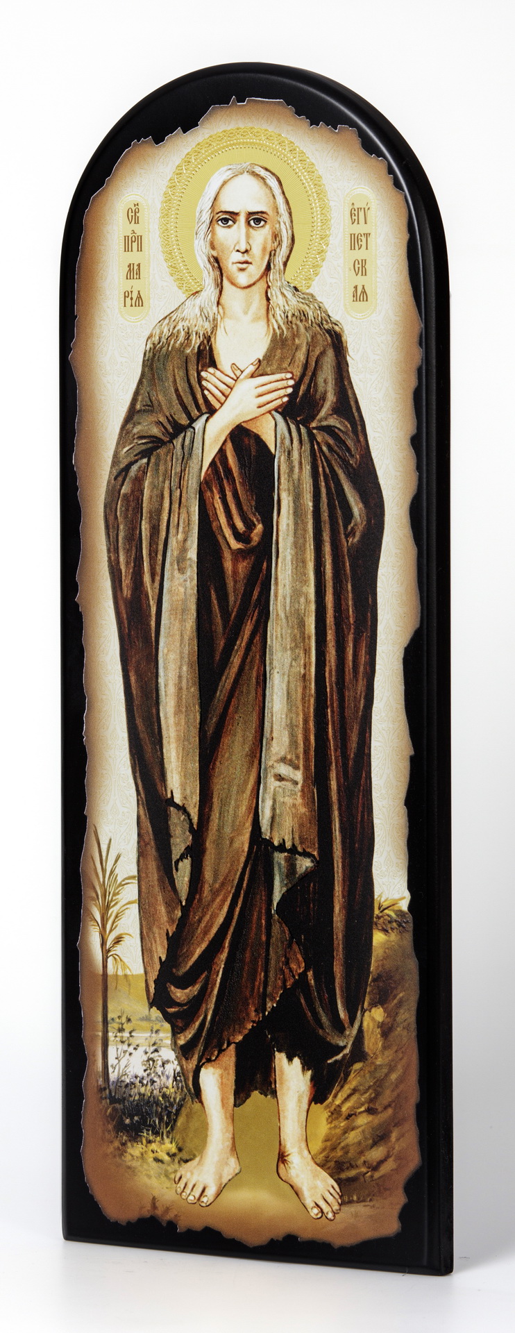 Икона на МДФ 18х50 арочная, объёмная печать, лак Мария Египетская 4