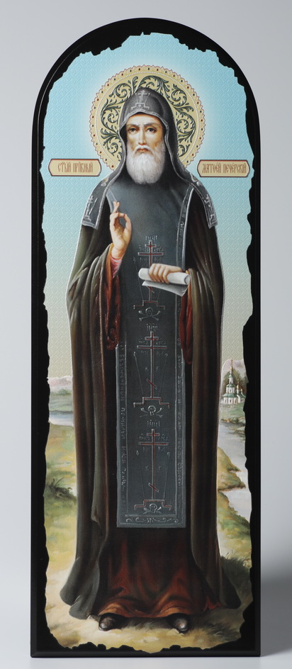 Икона на МДФ 18х50 арочная, объёмная печать, лак Матфей Печерский