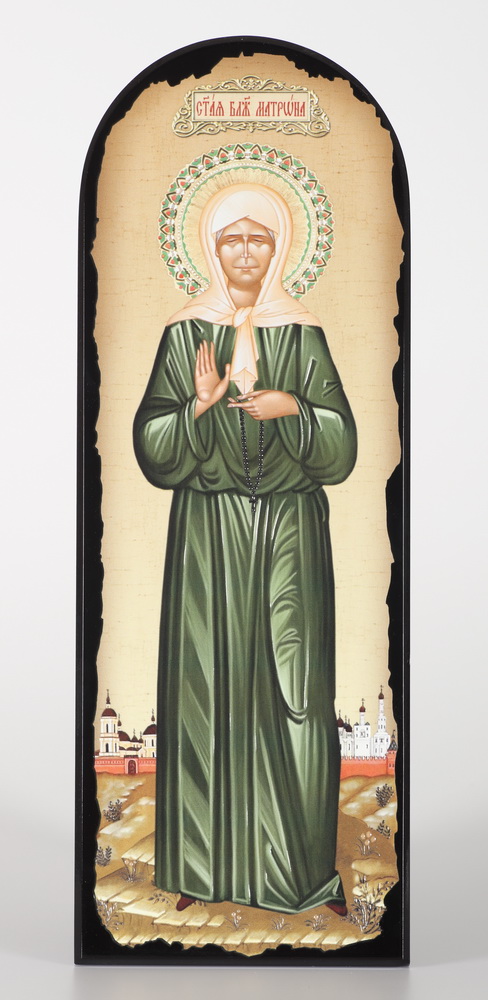 Икона на МДФ 18х50 арочная, объёмная печать, лак Матрона (ростовая)