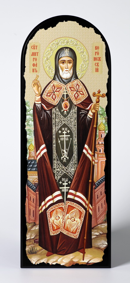 Икона на МДФ 18х50 арочная, объёмная печать, лак Митрофан Воронежский