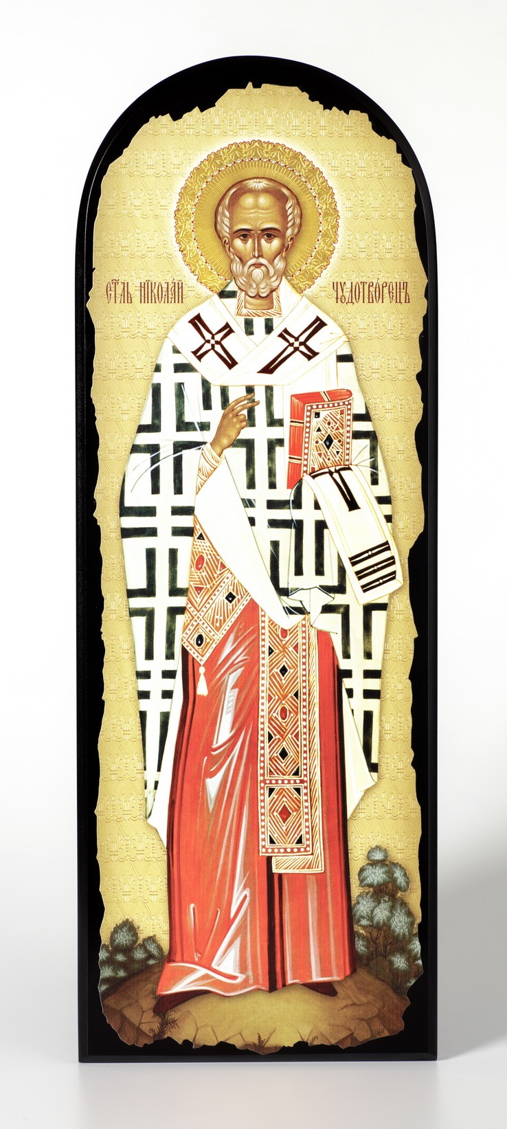 Икона на МДФ 18х50 арочная, объёмная печать, лак Николай Чудотворец 2