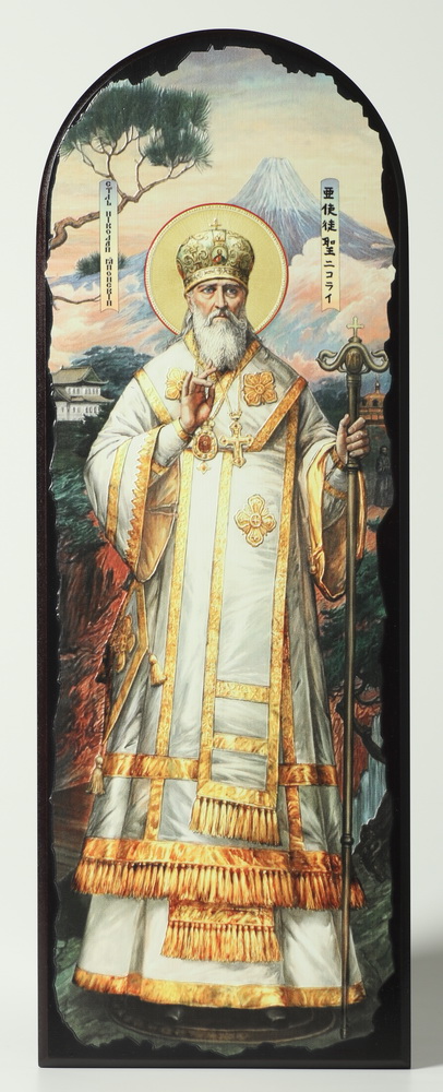Икона на МДФ 18х50 арочная, объёмная печать, лак Николай Японский