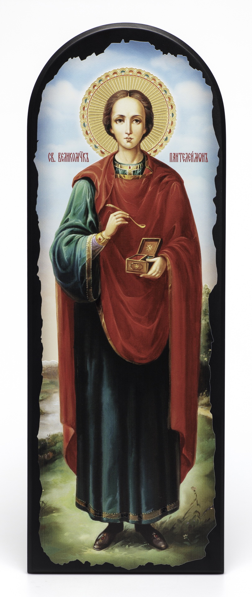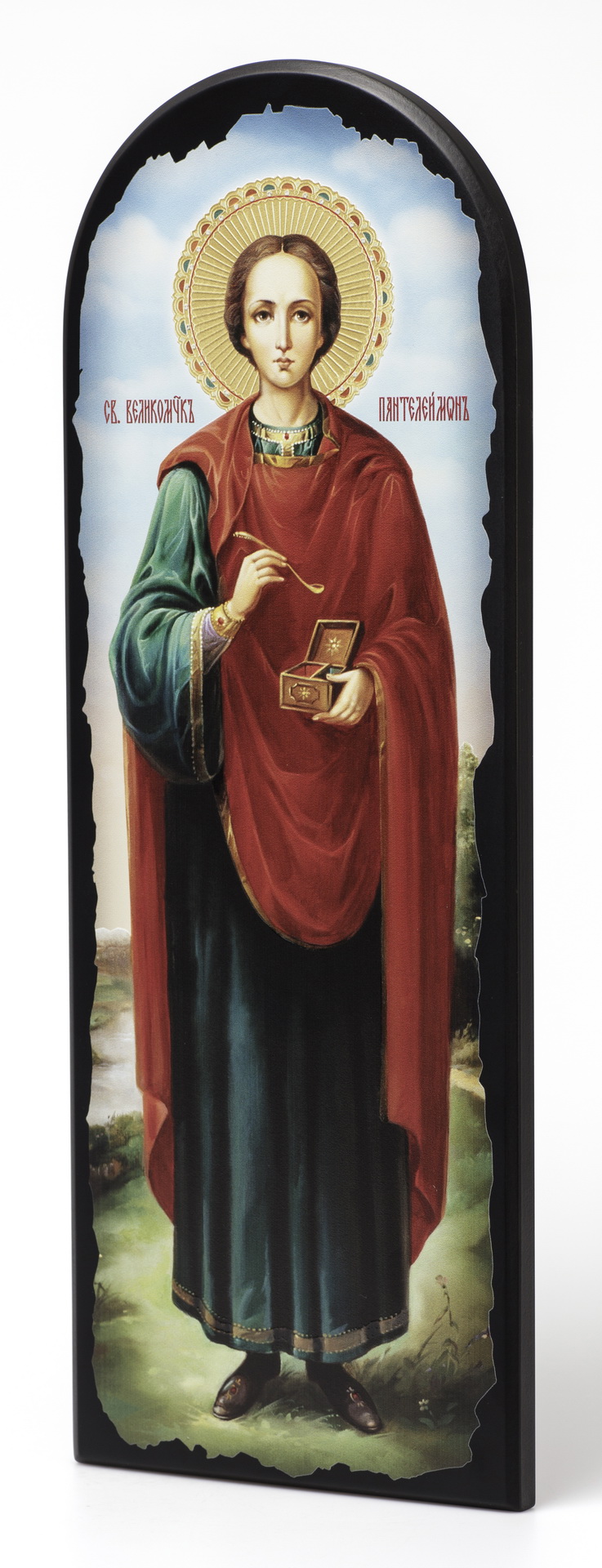 Икона на МДФ 18х50 арочная, объёмная печать, лак Пантелеимон 2