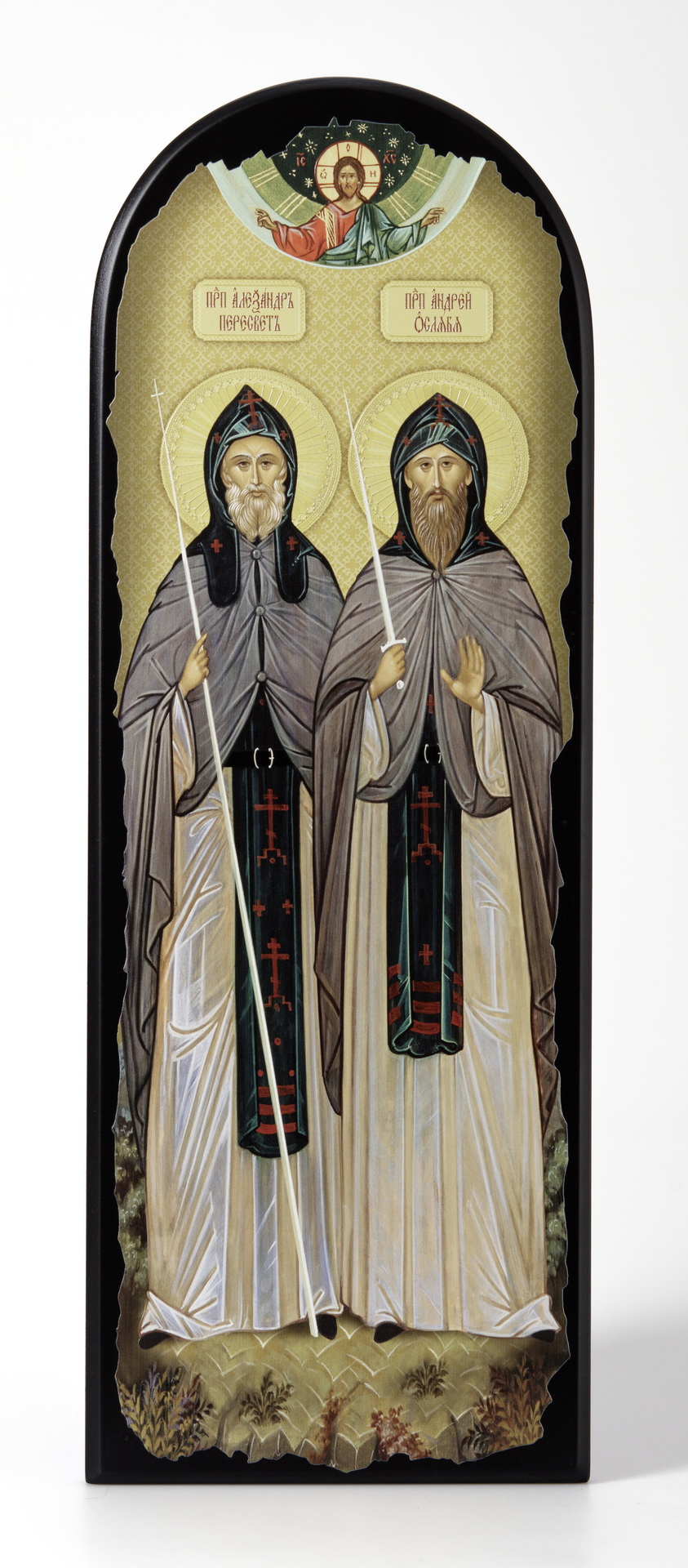 Икона на МДФ 18х50 арочная, объёмная печать, лак Пересвет и Ослябя,