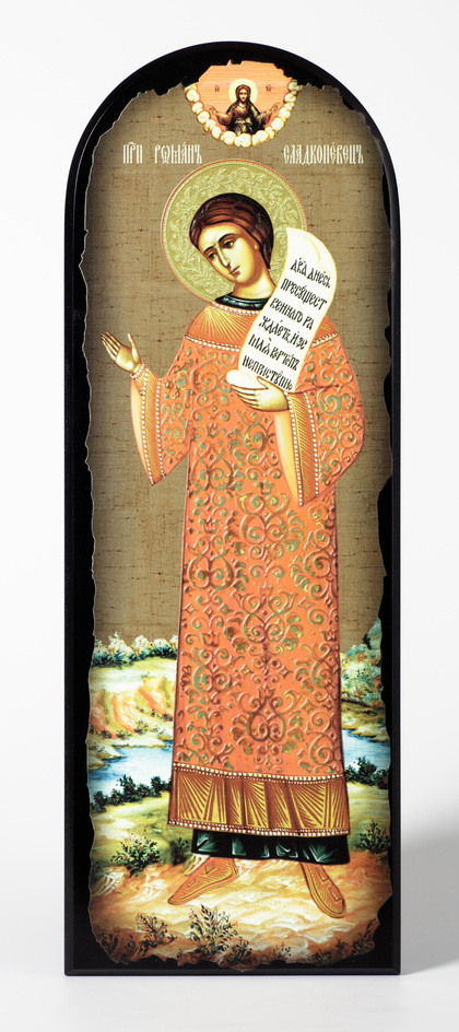 Икона на МДФ 18х50 арочная, объёмная печать, лак Роман Сладкопевец