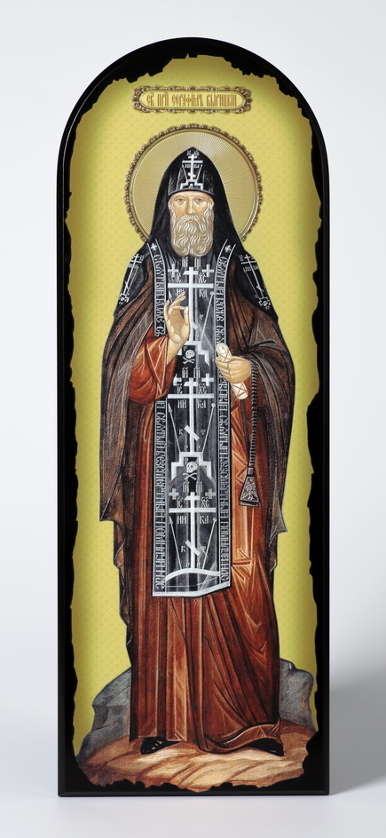 Икона на МДФ 18х50 арочная, объёмная печать, лак Серафим Вырицкий