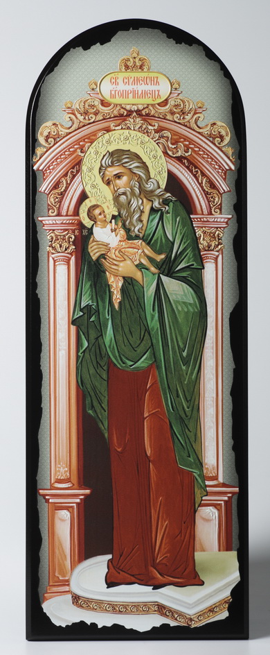 Икона на МДФ 18х50 арочная, объёмная печать, лак Симеон Богоприимец