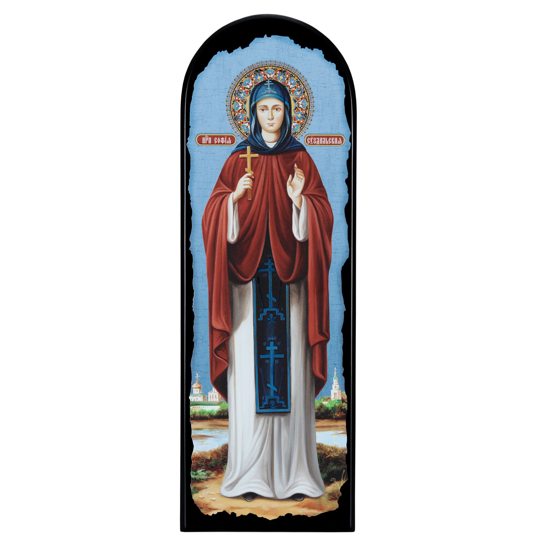 Икона на МДФ 18х50 арочная, объёмная печать, лак София Суздальская