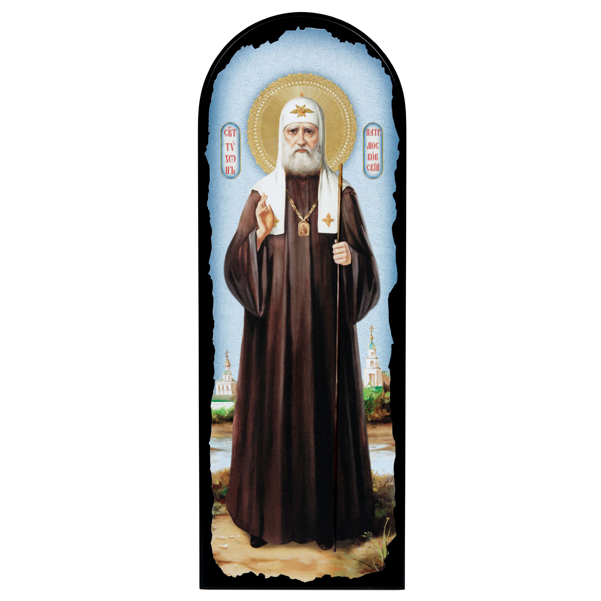 Икона на МДФ 18х50 арочная, объёмная печать, лак Тихон Патриарх Московский