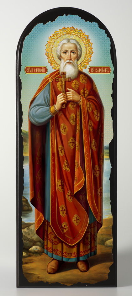 Икона на МДФ 18х50 арочная, объёмная печать, лак Владимир 1